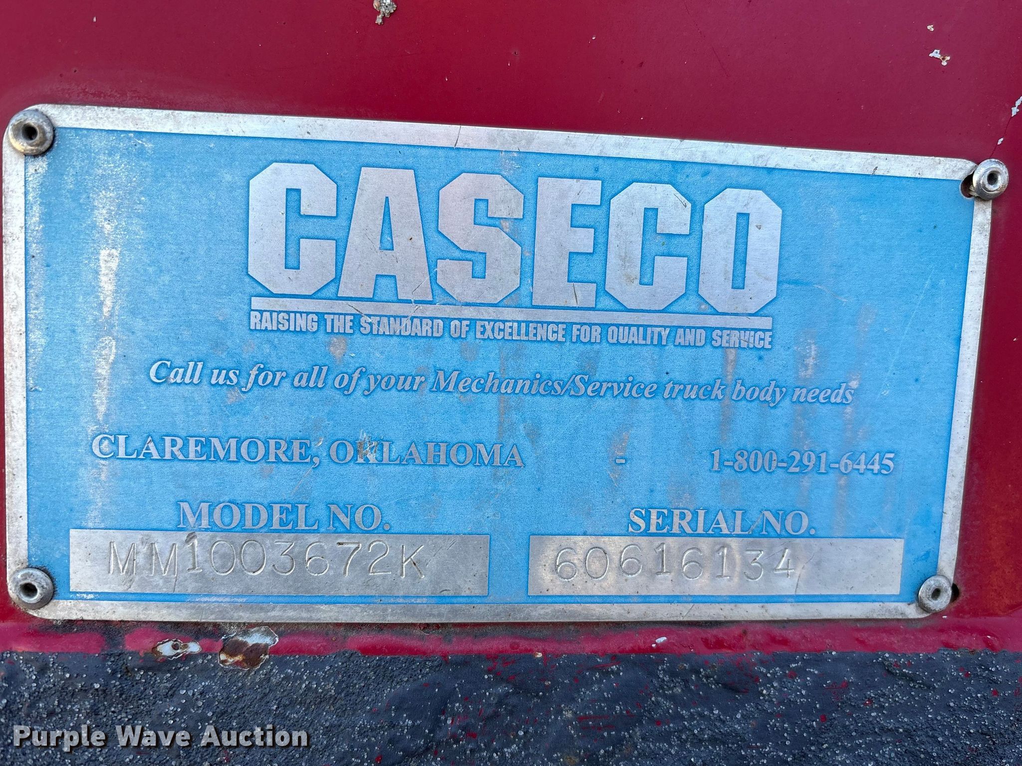 Purple Wave is selling a used Truck Part and Attach. in Nebraska. This item is a Caseco MM1003672K utility bed with the following: Serial: 60616134, Length: 10' 8", Width: 90", Height: 66", Bed type: Steel