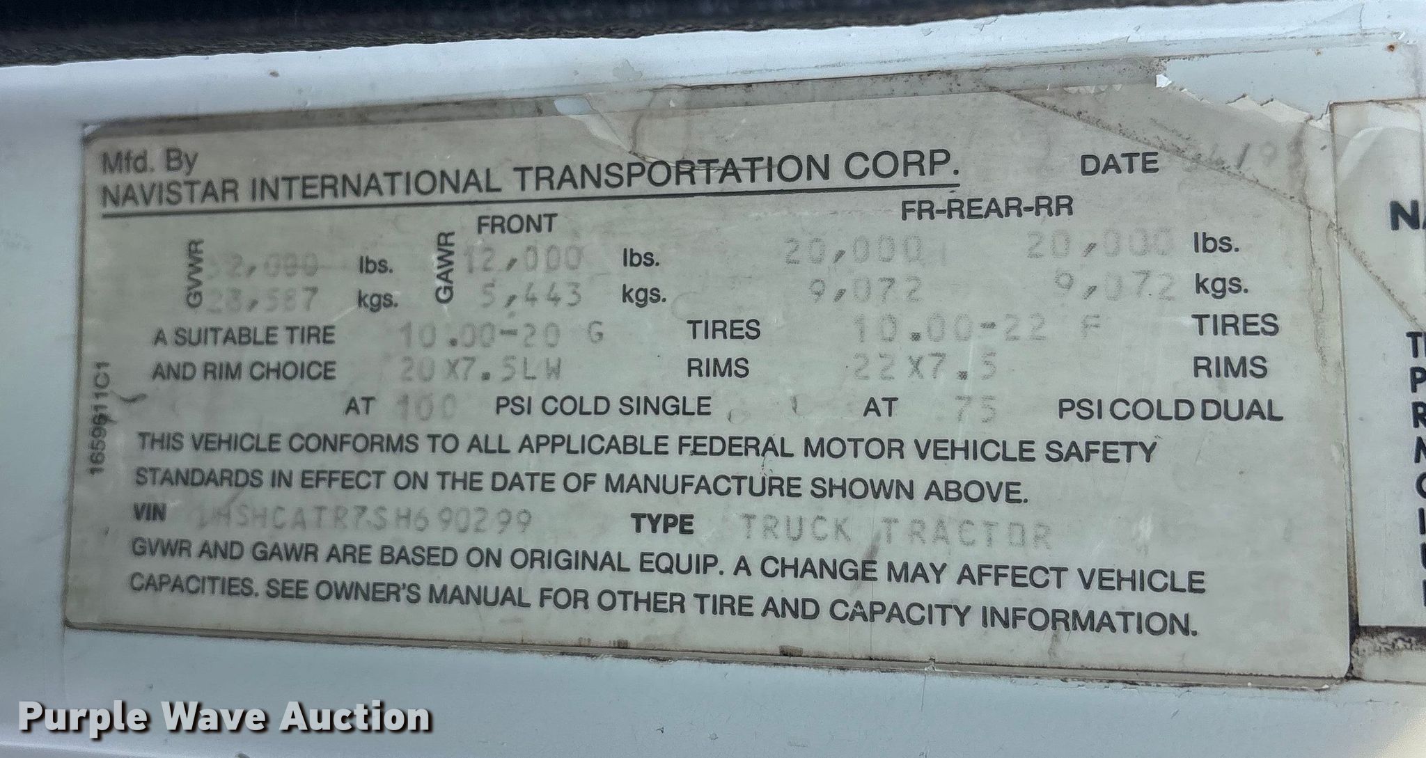 - VIN: 1HSHCATR7SH690299