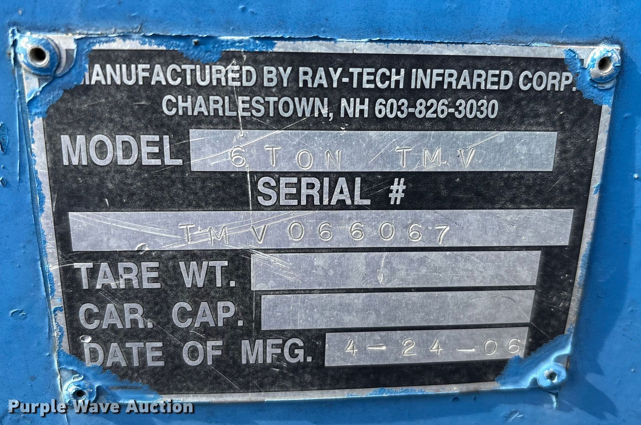 2006 GMC C7500 Crew Cab infrared asphalt heater truck. Miles: 107,497 on odometer, VIN: 1GDM7E1366F422875. Engine Cylinders: 6, Fuel type: Diesel. Transmission Automatic. Chassis Axles: Single, Suspension: Spring, Brakes: Air. Interior AC, Heat, Cruise control, Auxiliary controls. Features Deck plate: Steel, Fuel tank: Dual. Tires Front: 255/70R22.5. Features Ray-Tech 6TON TMV reclaimer Serial: TMV066067, Fuel type: LPG, Side dump box Capacity: 6 tons, Infrared heater Dimensions: 6' x 8', Controls: Electric, Owners manuals. Notes Drivers side ground heater will not lite, gas supply valve issues. Michigan title. Title distribution may be delayed up to 14 days from verification of funds. Asphalt Solutions Plus. Marshall, MI 49068