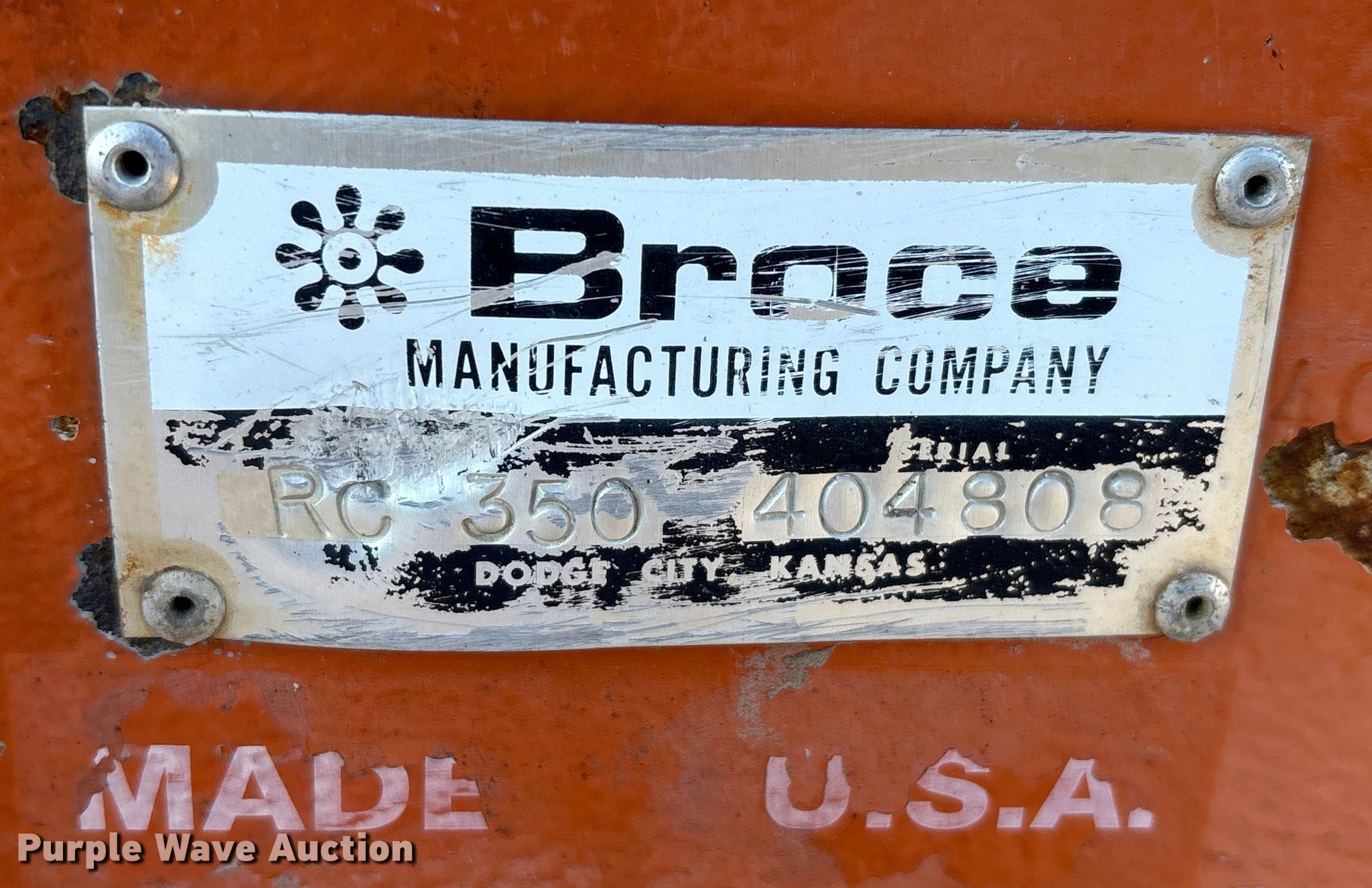 Purple Wave is selling a used Broom in Ohio. This item is a Broce broom with the following: Hours: 1,480 on meter, Serial: RC-350 404808