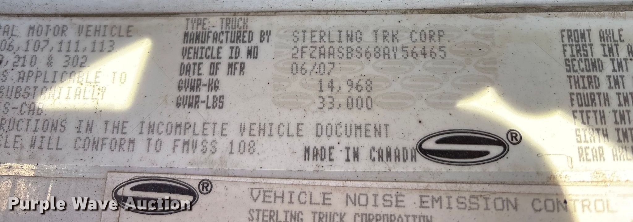 Purple Wave is selling a used Oil Distributor Truck in Ohio. This item is a 2008 Sterling oil distributor truck with the following: Miles: 120,252 on odometer, VIN: 2FZAASBS68AY56465