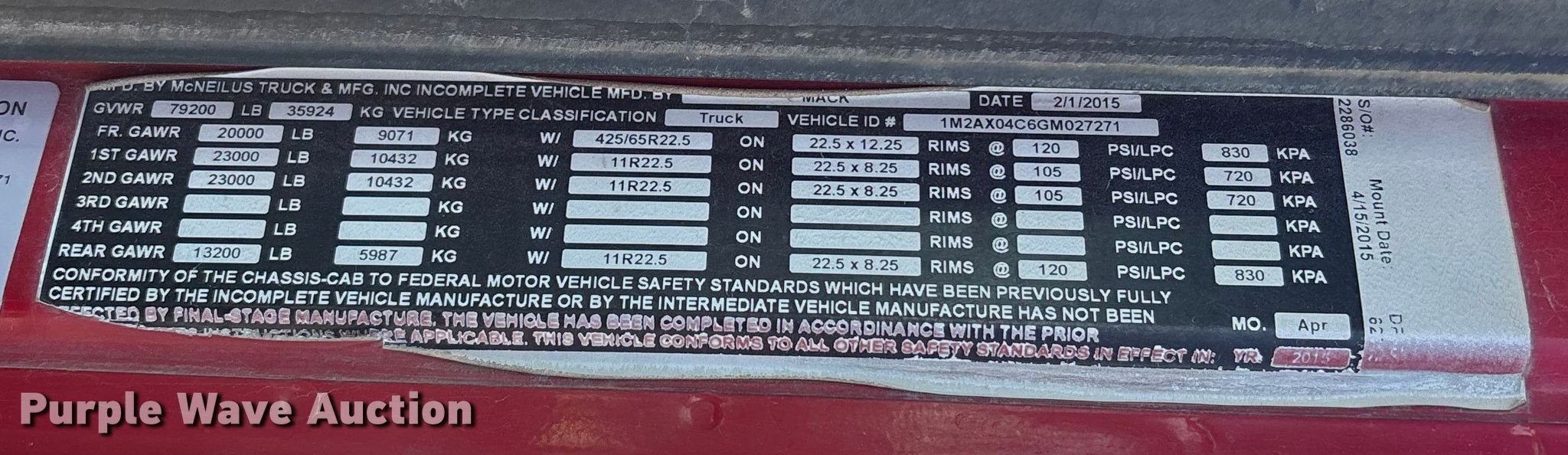 - Front: 425/65R 22.5