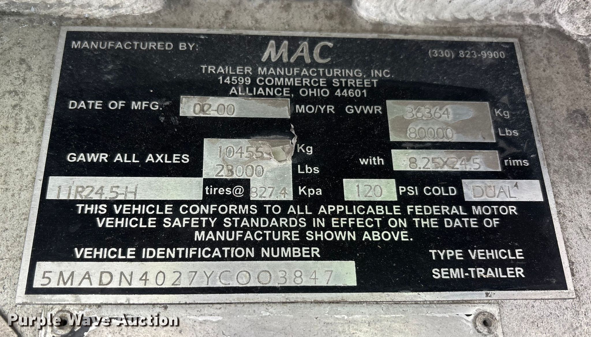 Purple Wave is selling a used End Dump Rock Trailer in West Virginia. This item is a 2000 Mac Mac Trailer Manufacturing end dump trailer with the following: VIN: 5MADN4027YC003847, Unit #: 74301845
