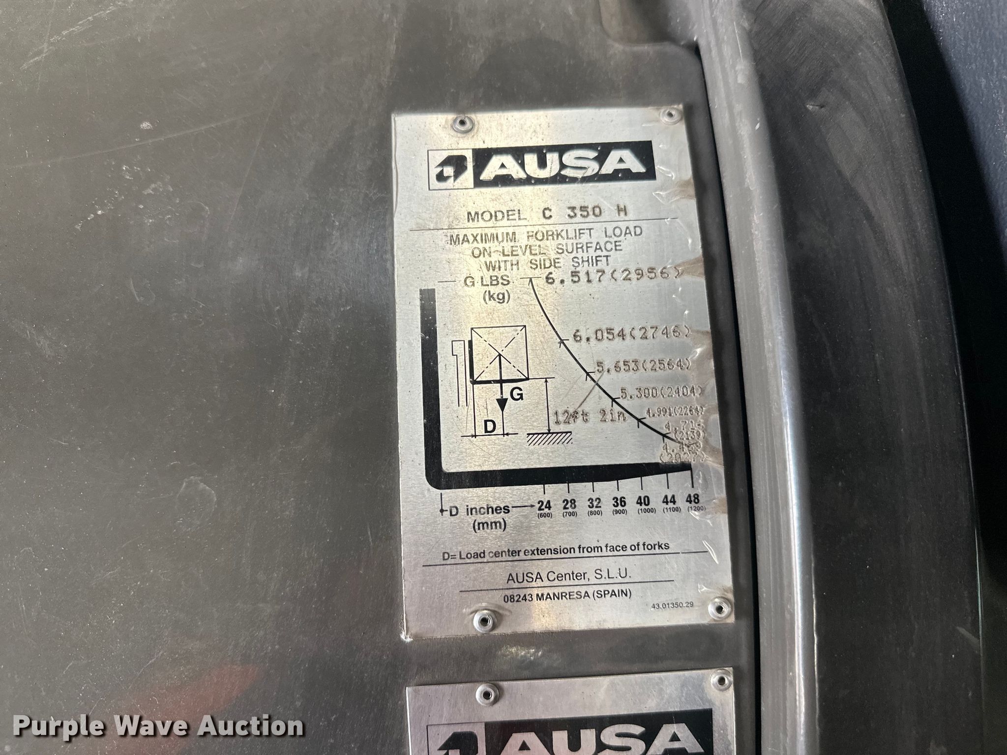2018 Ausa C350H X4 forklift. Hours: 2,807 on meter, Serial: 57308299, Unit #: 74474785. Engine Kubota V2403, Displacement: 2.4L, Cylinders: 5, Fuel type: Diesel. Transmission Powershift. Chassis Four wheel drive. Operators station Enclosed cab, Heat. Features Maximum lift capacity: 3,233 lbs, Maximum lift height: 146", Collapsed mast height: 85", Mast stages: 3, Mast tilt, Fork length: 47". Tires Front: 16/70-20, Rear: 10.0/70-15.3. Copart fleet inventory reduction, stored at a secured facility. Please review REQUIRED REMOVAL INSTRUCTIONS. Copart Fleet Inventory Reduction. Ham Lake, MN 55304