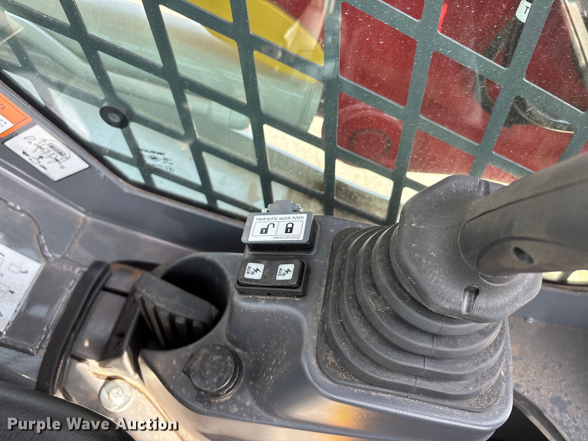 Takeuchi TL6R tracked skid steer loader. Hours: 18 on meter, Serial: 406007154, Unit #: 77190715. Engine Kubota, Displacement: 2.4L, Cylinders: 3, Fuel type: Diesel. Transmission Hydrostatic, Two speed travel. Operators station Enclosed cab, AC, Heat, Backup camera, Bucket control: Hand, Electronic Monitoring System panel. Features Auxiliary hydraulics, Auxiliary electrical outlet, Quick coupler: Hydraulic. Tracks Width: 12". Notes Collision damage. Buyer responsible for all aspects of loadout and removal. Insurance salvage, stored at a secured facility. Please review REQUIRED REMOVAL INSTRUCTIONS. Insurance Salvage. Conway, AR 72032