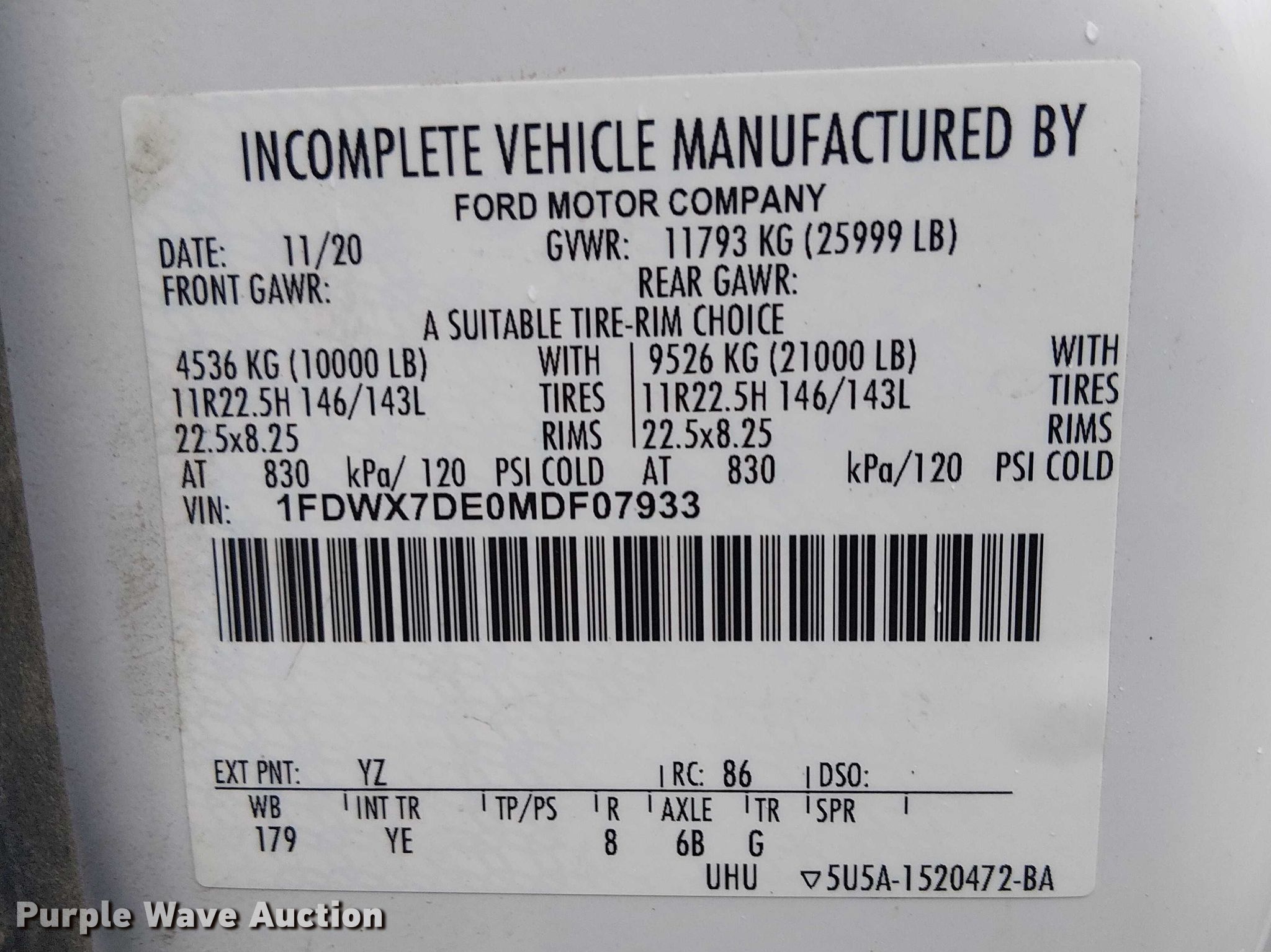 Purple Wave is selling a used Service Truck in Pennsylvania. This item is a 2021 Ford F750 Super Duty utility / service truck with the following: Miles: 103,731 on odometer, VIN: 1FDWX7DE0MDF07933, Unit #: 77383885