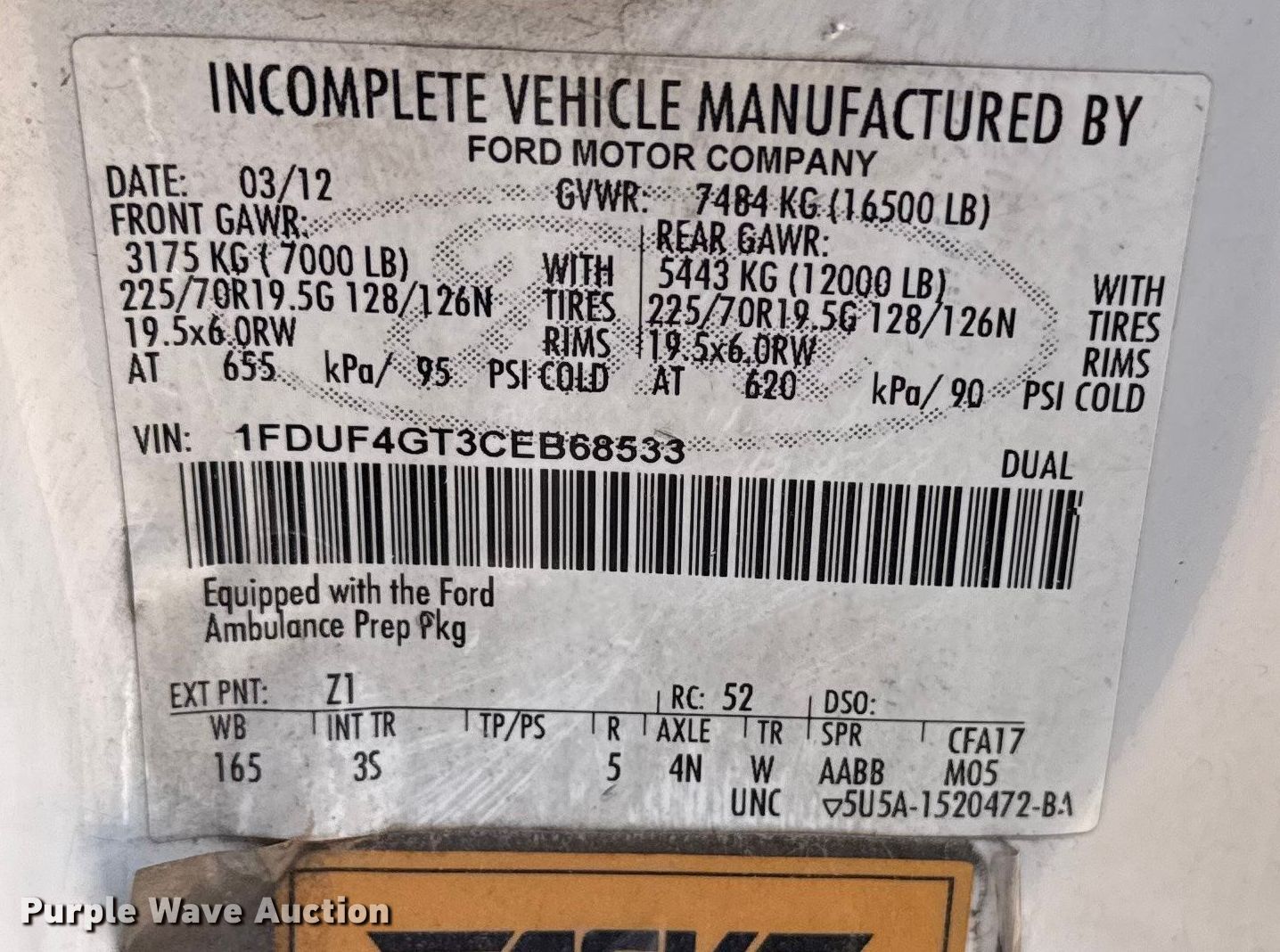 Purple Wave is selling a used Fire Truck or Emergency Vehicle in Oklahoma. This item is a 2012 Ford F450 Super Duty XLT ambulance with the following: Miles: 401,233 on odometer, VIN: 1FDUF4GT3CEB68533