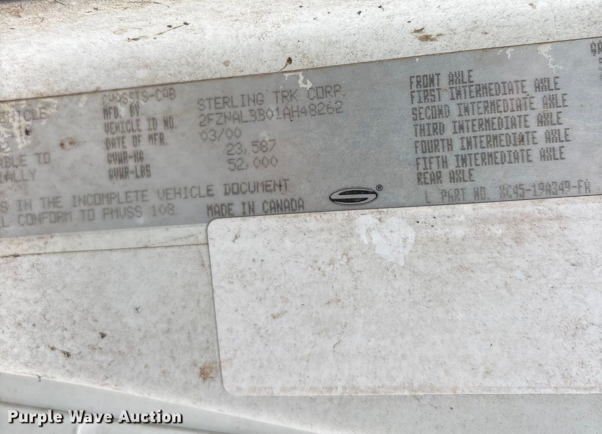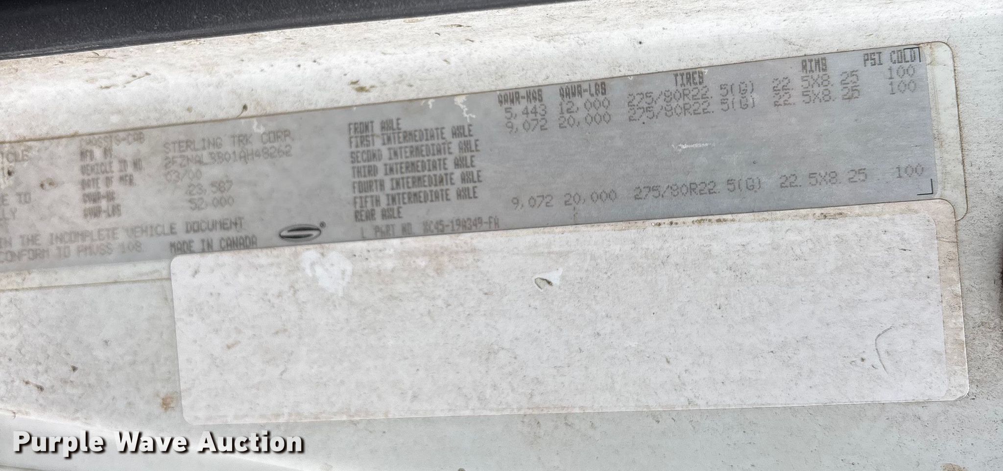 Purple Wave is selling a used Construction Dump Truck in Florida. This item is a 2001 Sterling dump truck with the following: Miles: 58,768 on odometer, VIN: 2FZNALBB01AH48262