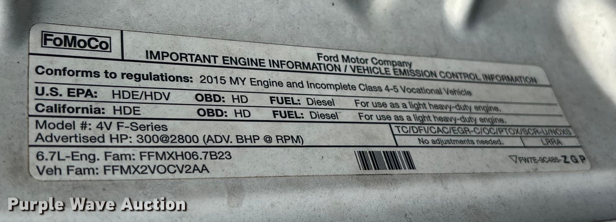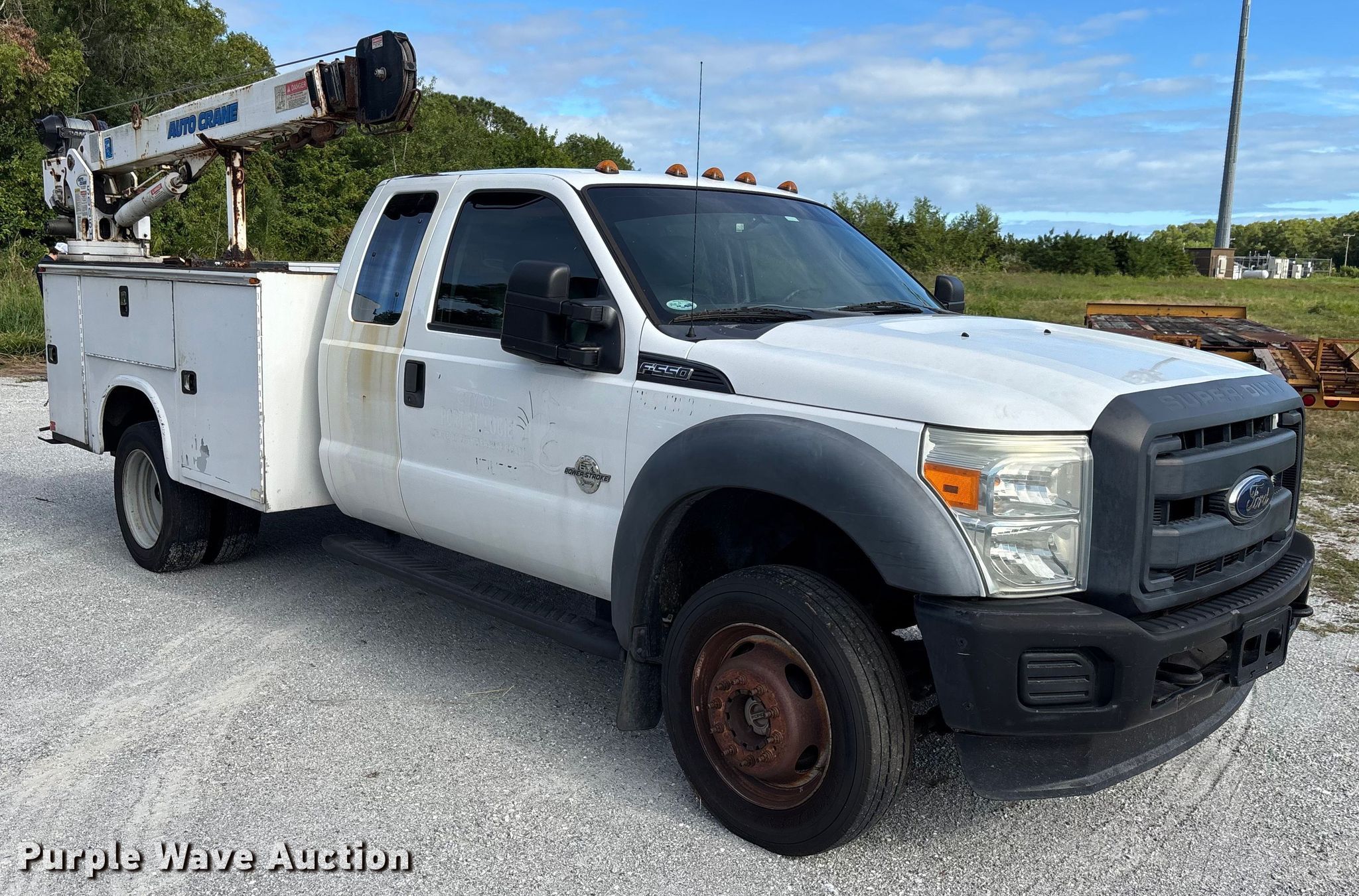 2015 Ford F550 Super Duty utility / service truck. Miles: 135,343 on odometer, VIN: 1FD0X5HT2FEA41308. Engine Ford, Displacement: 6.7L, Cylinders: 8, Fuel type: Diesel. Transmission Automatic. Chassis Four wheel drive, Axles: Single, Suspension: Spring, Brakes: Hydraulic, GVWR: 18,000 lbs. Interior AC, Heat, Auxiliary controls. Features Bed Utility bed, KNAPHEIDE, Length: 9', Width: 95", Crane Auto Crane 5005H, Maximum boom length: 27' Maximum lift capacity: 5,000 lbs.. Tires Size: 225/70R19.5. Notes Dash warning indicator: Check engine, Jump start required during on-site data collection, Crane remote missing, Diesel fuel cap missing. Florida title. Seller is a government entity who will be assigning and distributing the title. Please contact the seller for distribution questions. City of Port St. Lucie. Port St. Lucie, FL 34983