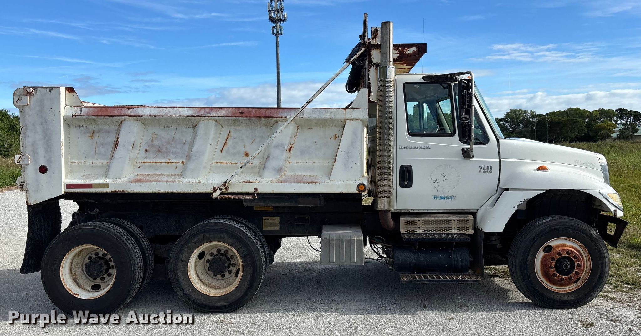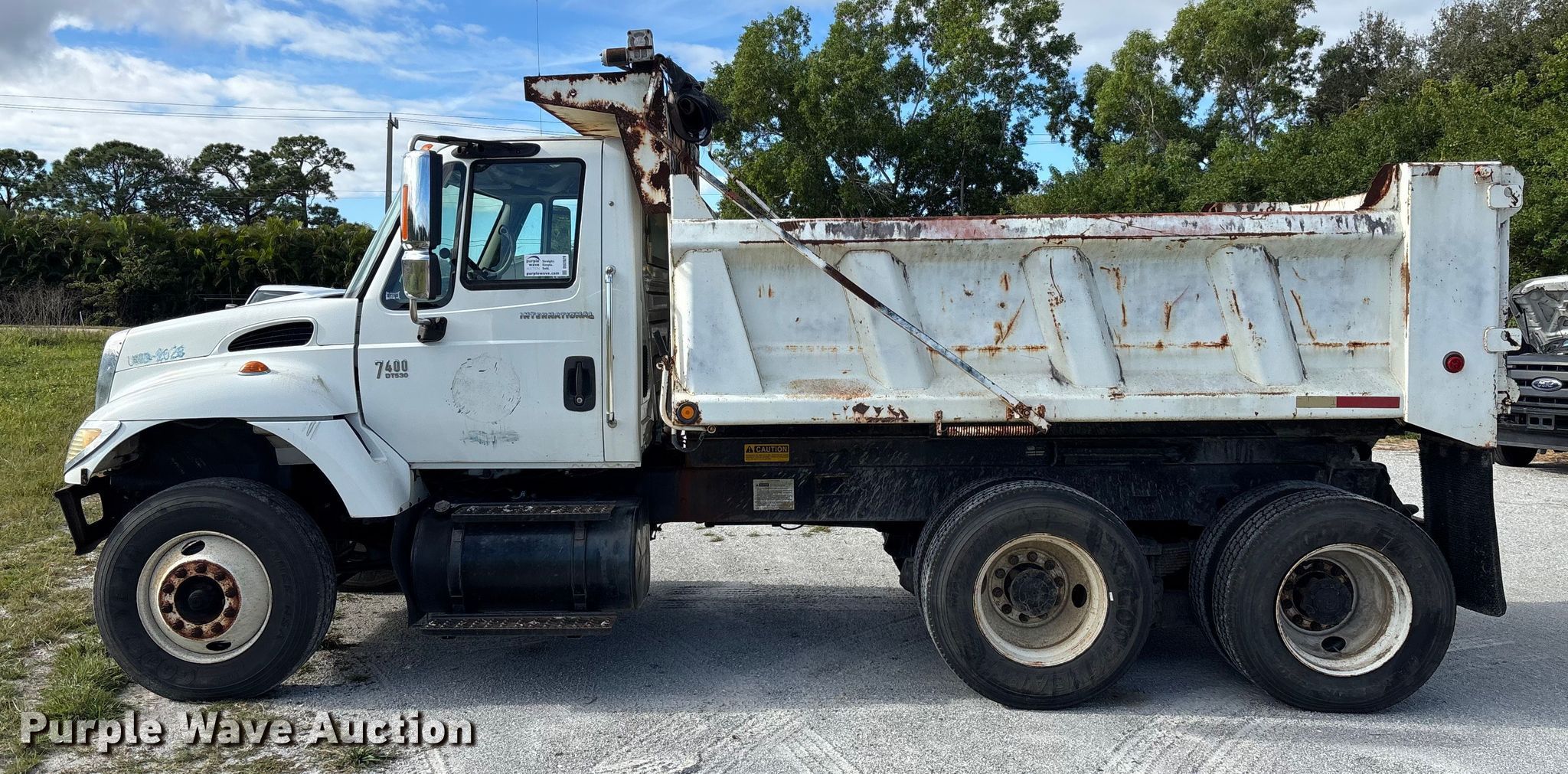 Purple Wave is selling a used Construction Dump Truck in Florida. This item is a 2003 International 7400 dump truck with the following: Miles: 58,495 on odometer, Hours: 5,172 on meter, VIN: 1HTWHADR73J062028