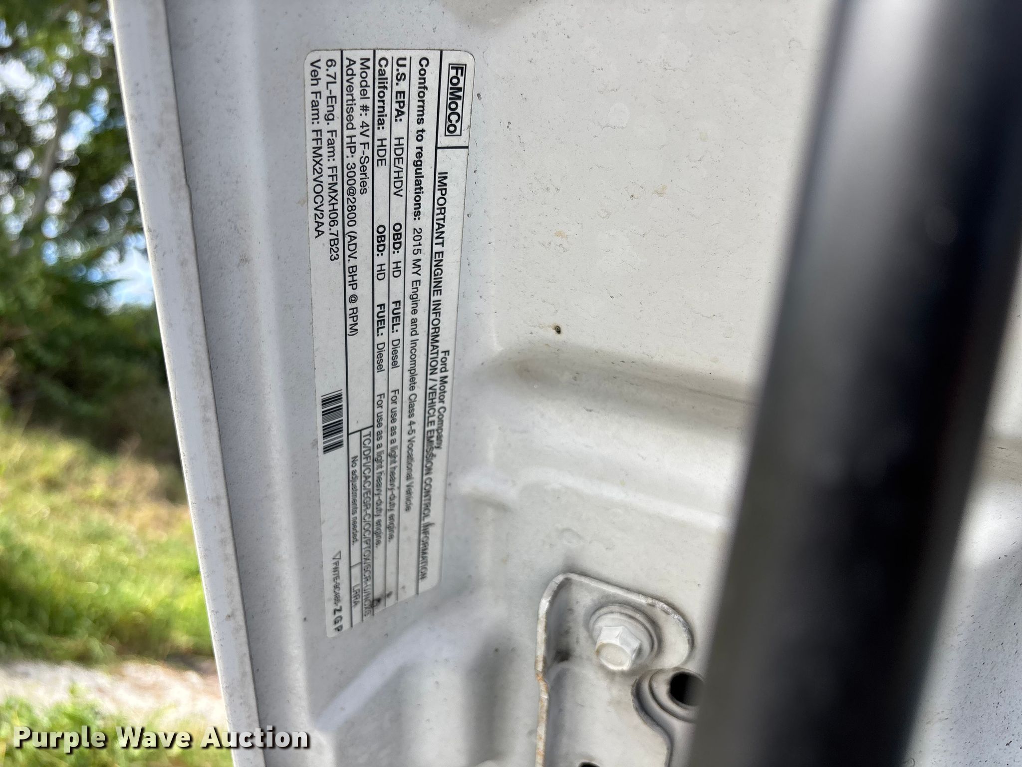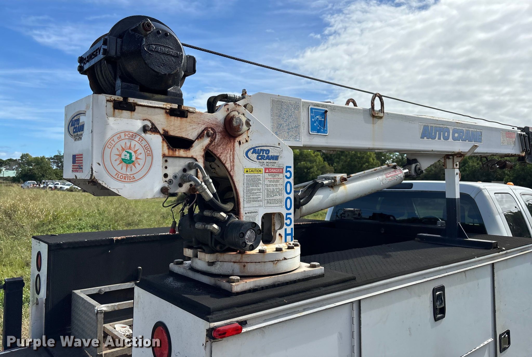 2015 Ford F550 Super Duty utility / service truck. Miles: 131,891 on odometer, VIN: 1FD0X5HT2FED43925. Engine Displacement: 6.7L, Cylinders: 8, Fuel type: Diesel. Transmission Automatic. Chassis Four wheel drive. Interior AC, Heat, Auxiliary controls. Features Bed Utility bed, KNAPHEIDE, Length: 9', Width: 96", Crane Auto Crane 5005H, Maximum boom length: 27' Maximum lift capacity: 5,000 lbs.. Tires Size: 225/70R19.55. Notes Dash warning indicator: Check engine, Jump start required during on-site data collection. Florida title. Seller is a government entity who will be assigning and distributing the title. Please contact the seller for distribution questions. Title distribution may be delayed up to 30 days from verification of funds. City of Port St. Lucie. Port St. Lucie, FL 34983