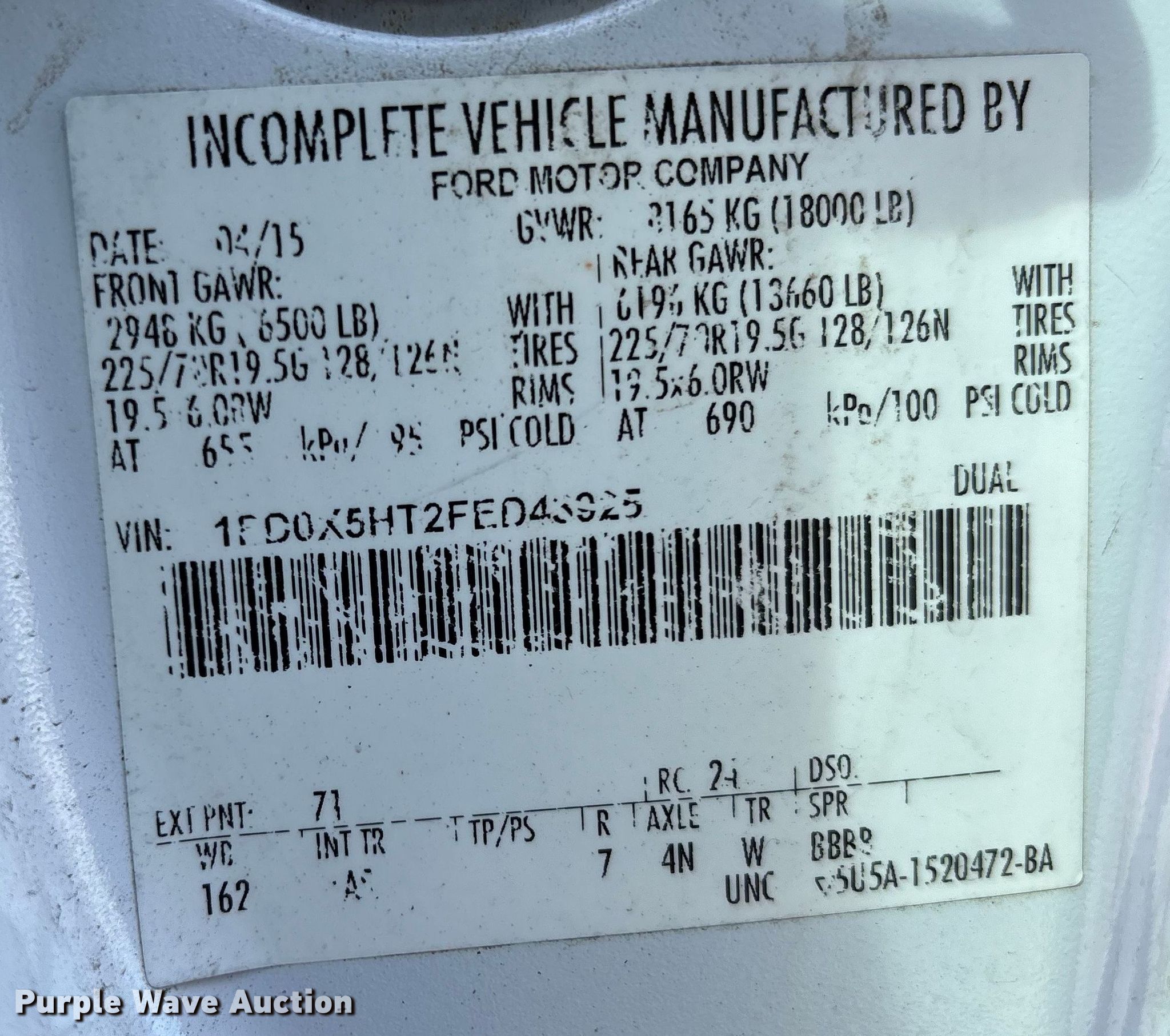 - VIN: 1FD0X5HT2FED43925