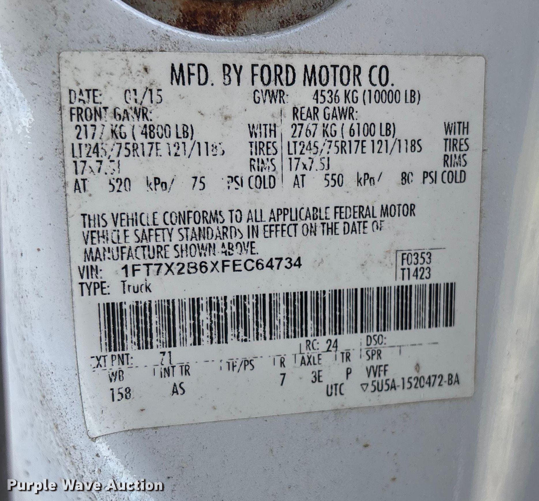 - VIN: 1FT7X2B6XFEC64734