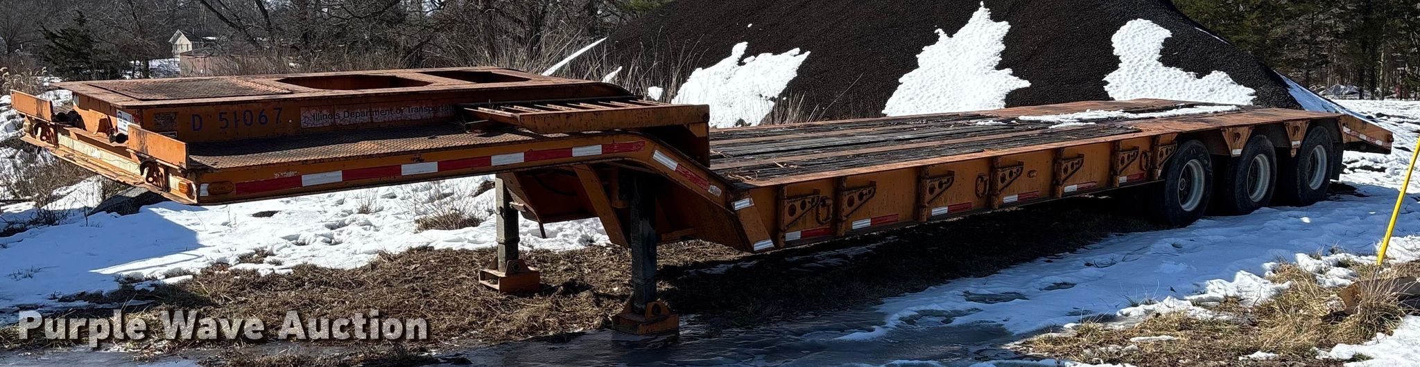 1973 Dorsey drop deck equipment trailer. VIN: 105759, Unit #: D51067. Dimensions Overall Length: 42' 6", Width: 8', Deck Length: 28' 4", Width: 8', Top deck length: 9', Deck height: 37", Tail length: 4' 4". Features Deck type: Steel, Wood, Outriggers: Swing-out Board size: 12". Chassis Landing gear: Dual, Suspension: Spring, Brakes: Air, Axles: Triple. Tires Steel wheels, Size: 10R17.5. Illinois title. Title distribution may be delayed up to 14 days from verification of funds. Mount Vernon, IL Highway Department. Mount Vernon, IL 62864