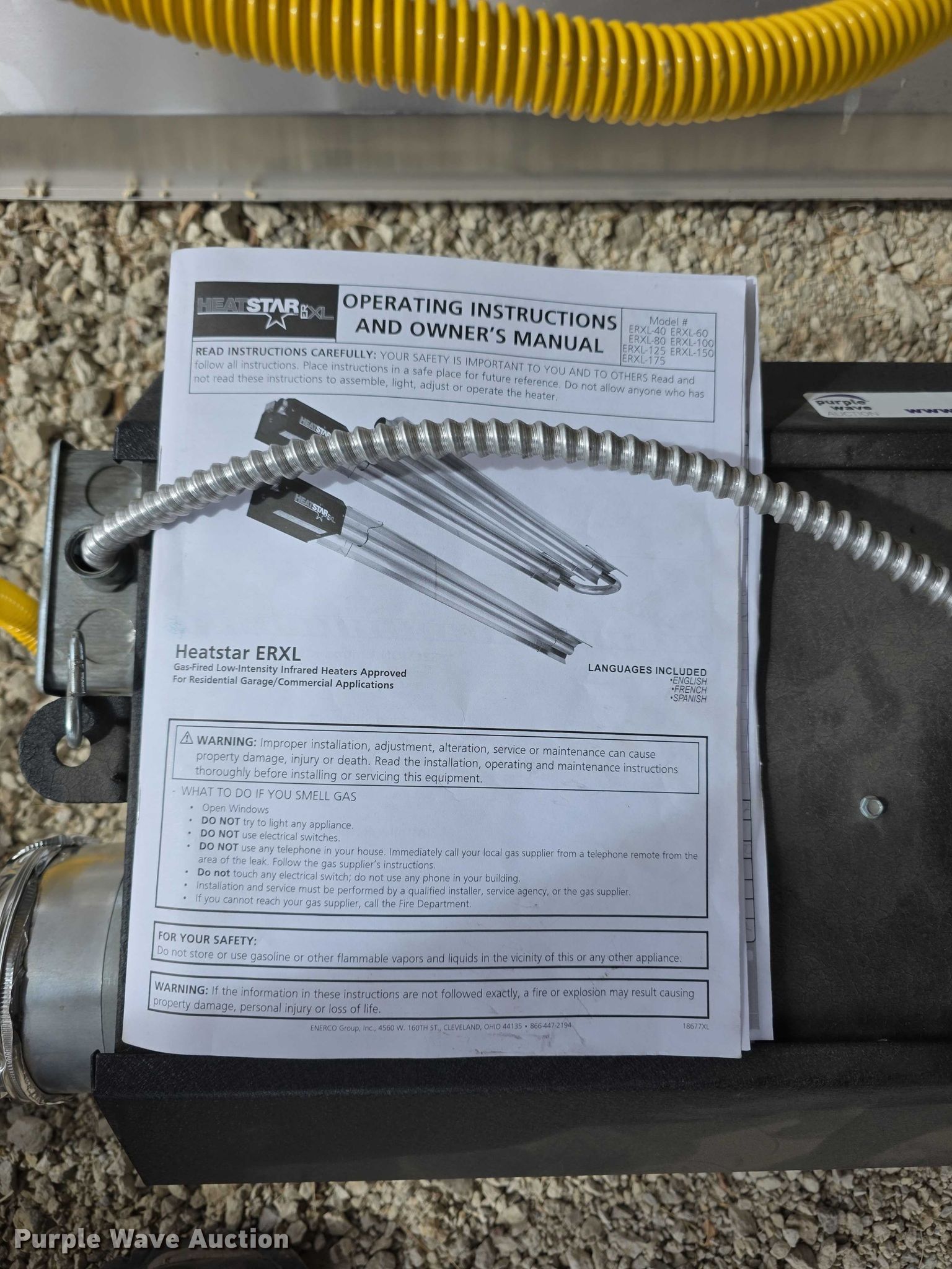 Purple Wave is selling a used Building Materials in Kansas. This item is a Heat Star ER XL heater with the following: Pipe length: 20', Gas-fired, Infrared, Owner's manual