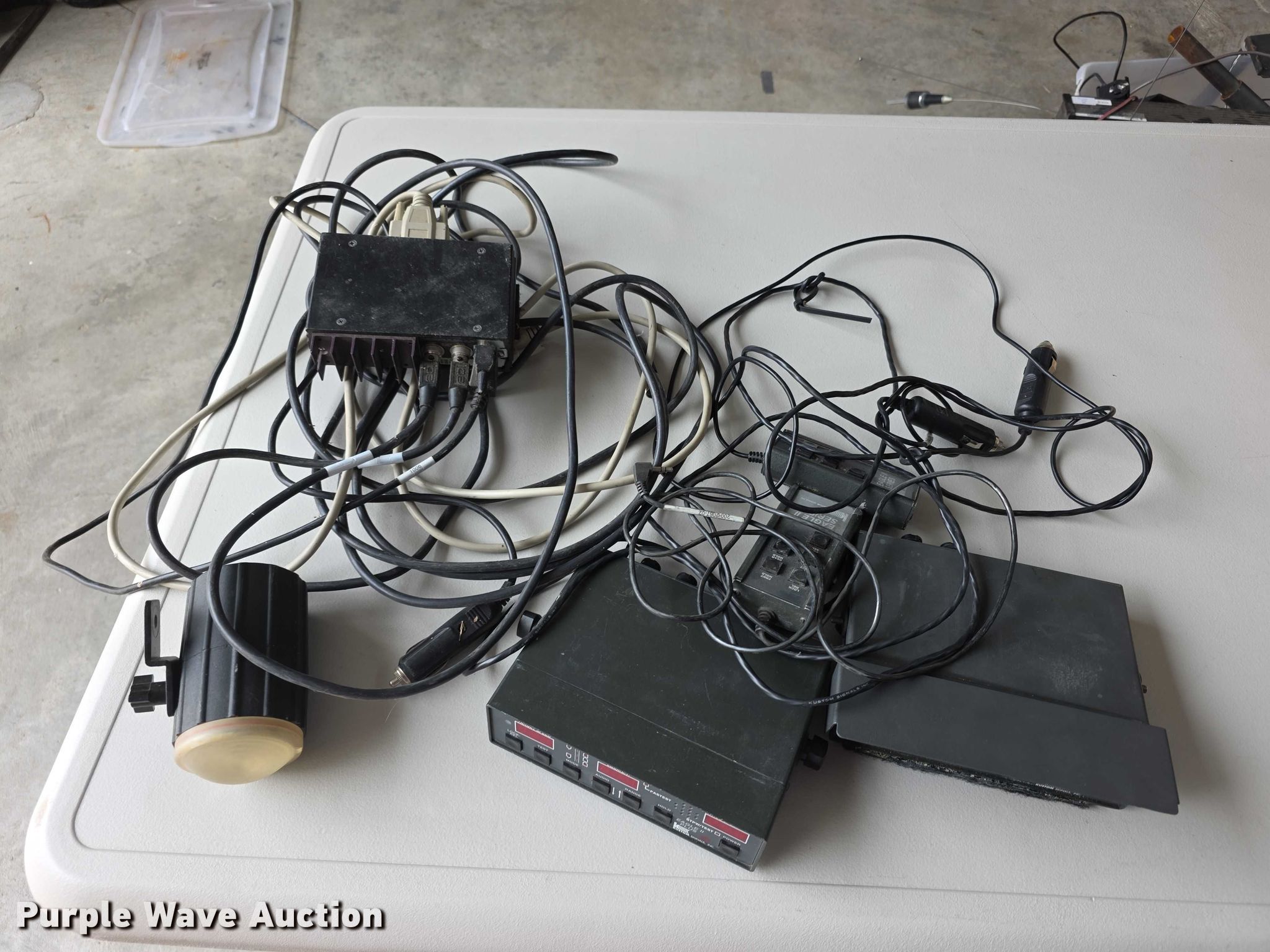 Law enforcement equipment. Light bars, Center consoles, Wiring harnesses, Measuring wheels, Foldable safety cones and more. Notes Table not included. Cloud County, KS. Concordia, KS 66901