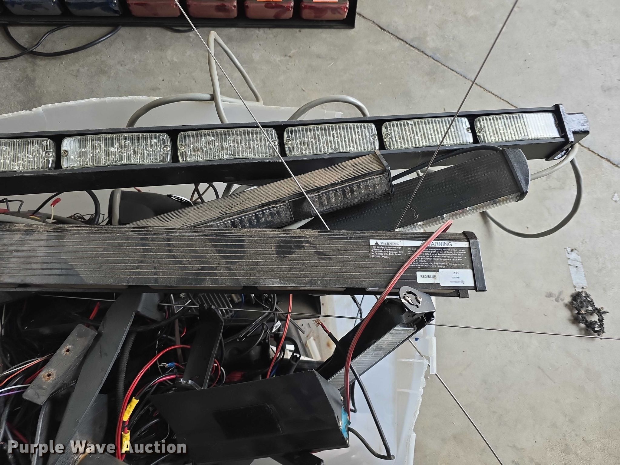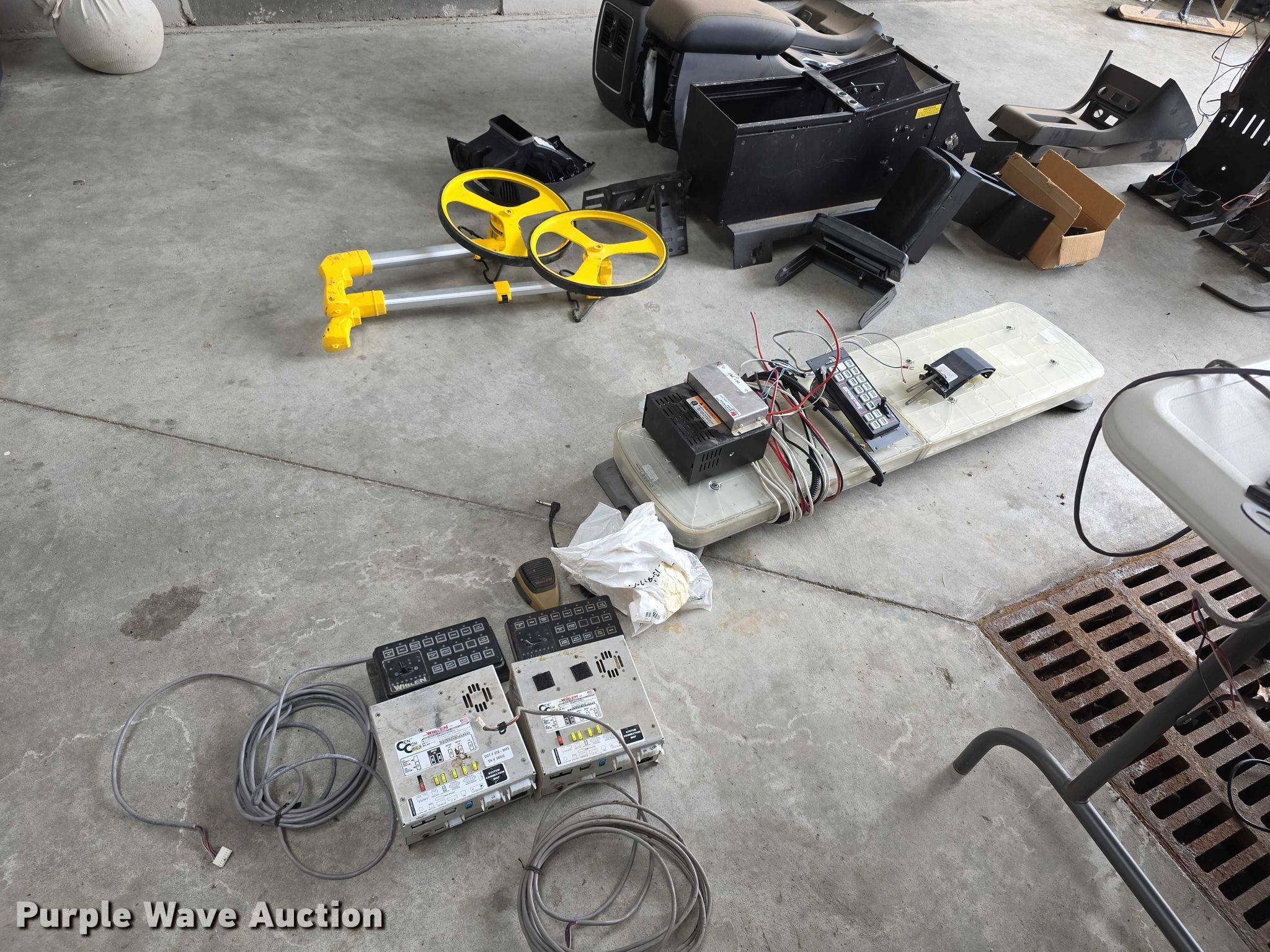 Purple Wave is selling a used Automotive Parts or Acces. in Kansas. This item is a Law enforcement equipment with the following: Light bars, Center consoles, Wiring harnesses, Measuring wheels, Foldable safety cones and more