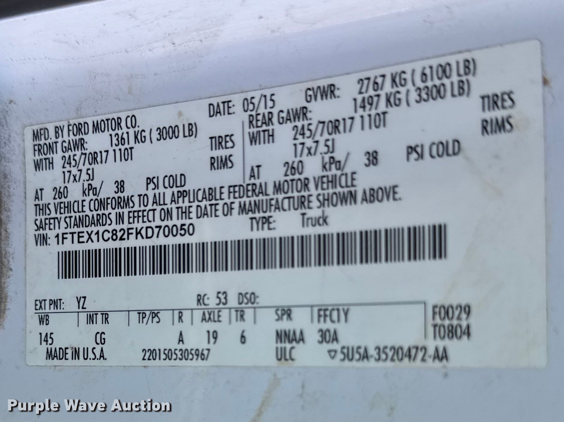 Purple Wave is selling a used 1/2 Ton Pickup or Van in Missouri. This item is a 2015 Ford F150 Ext. Cab pickup truck with the following: Miles: 124,595 on odometer, VIN: 1FTEX1C82FKD70050