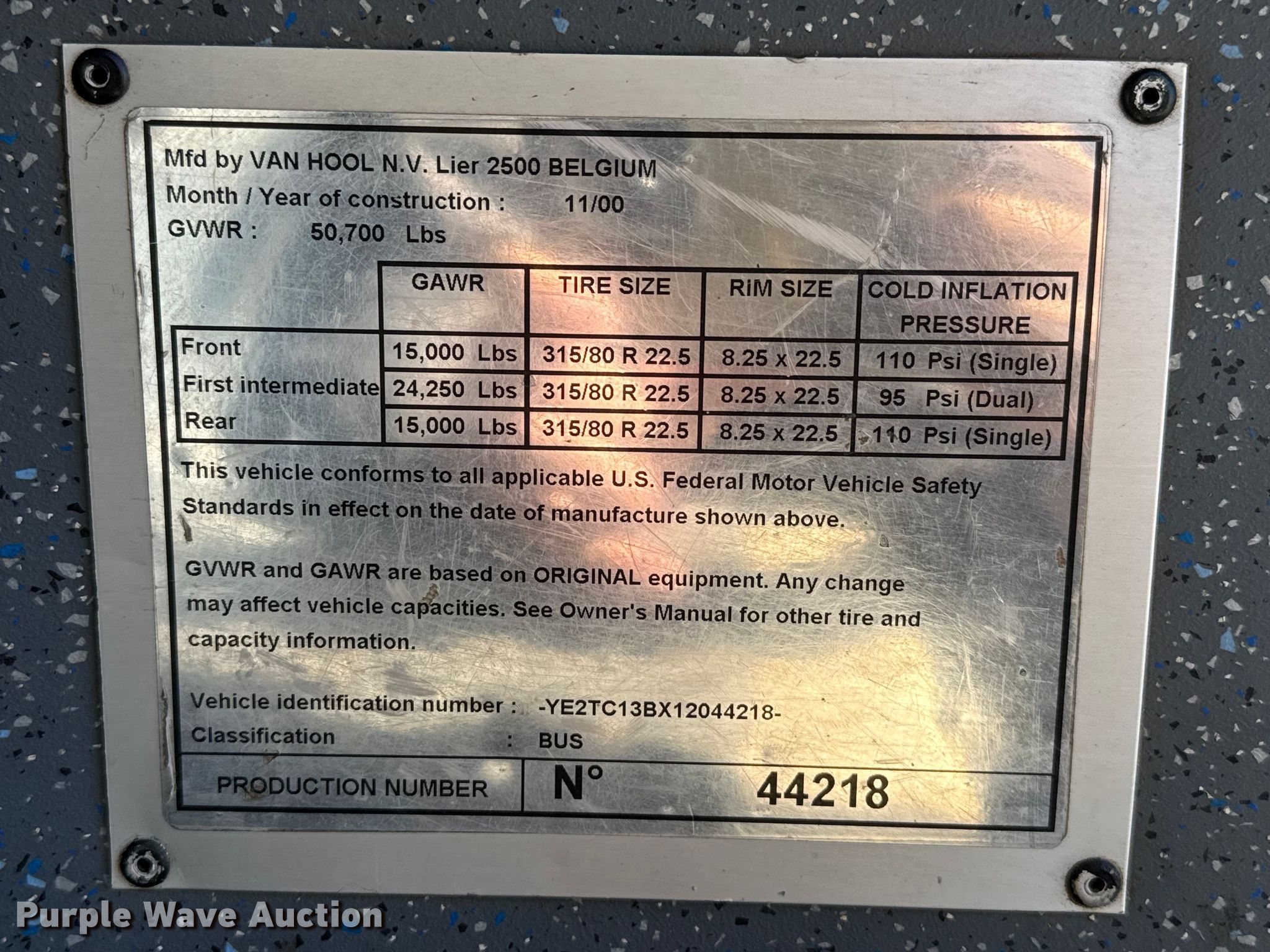 Purple Wave is selling a used Bus in Kansas. This item is a 2001 Van Hool coach bus with the following: Miles: 66,016 on odometer, VIN: YE2TC13BX12044218
