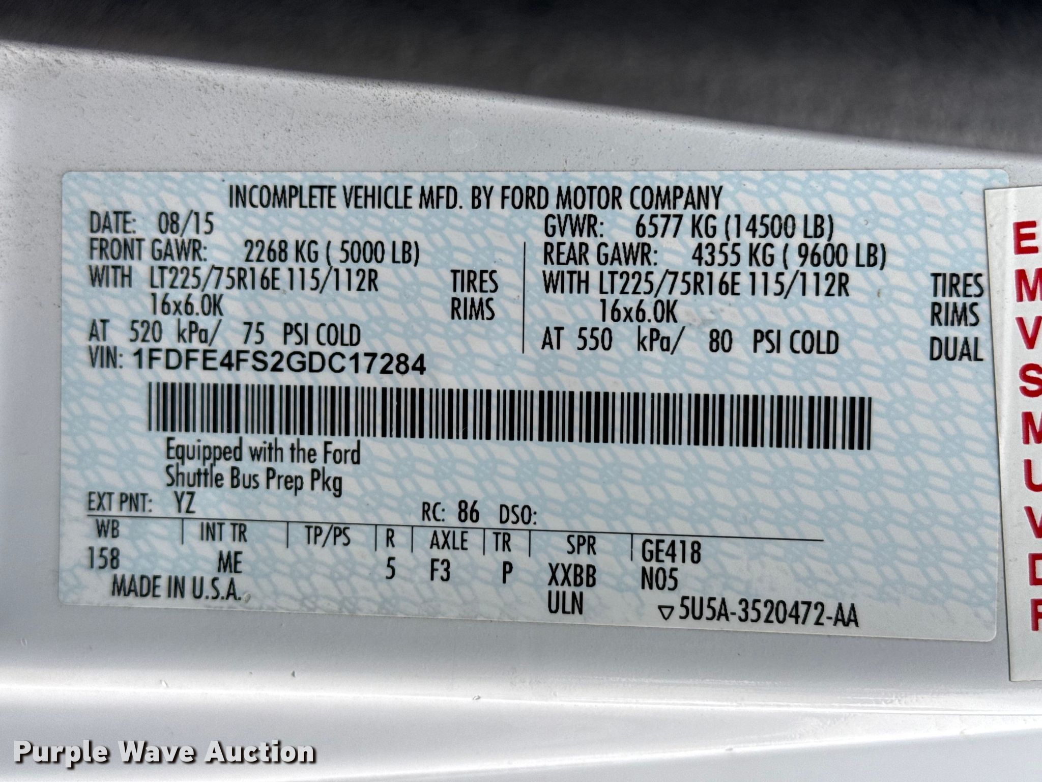 - VIN: 1FDFE4FS2GDC17284