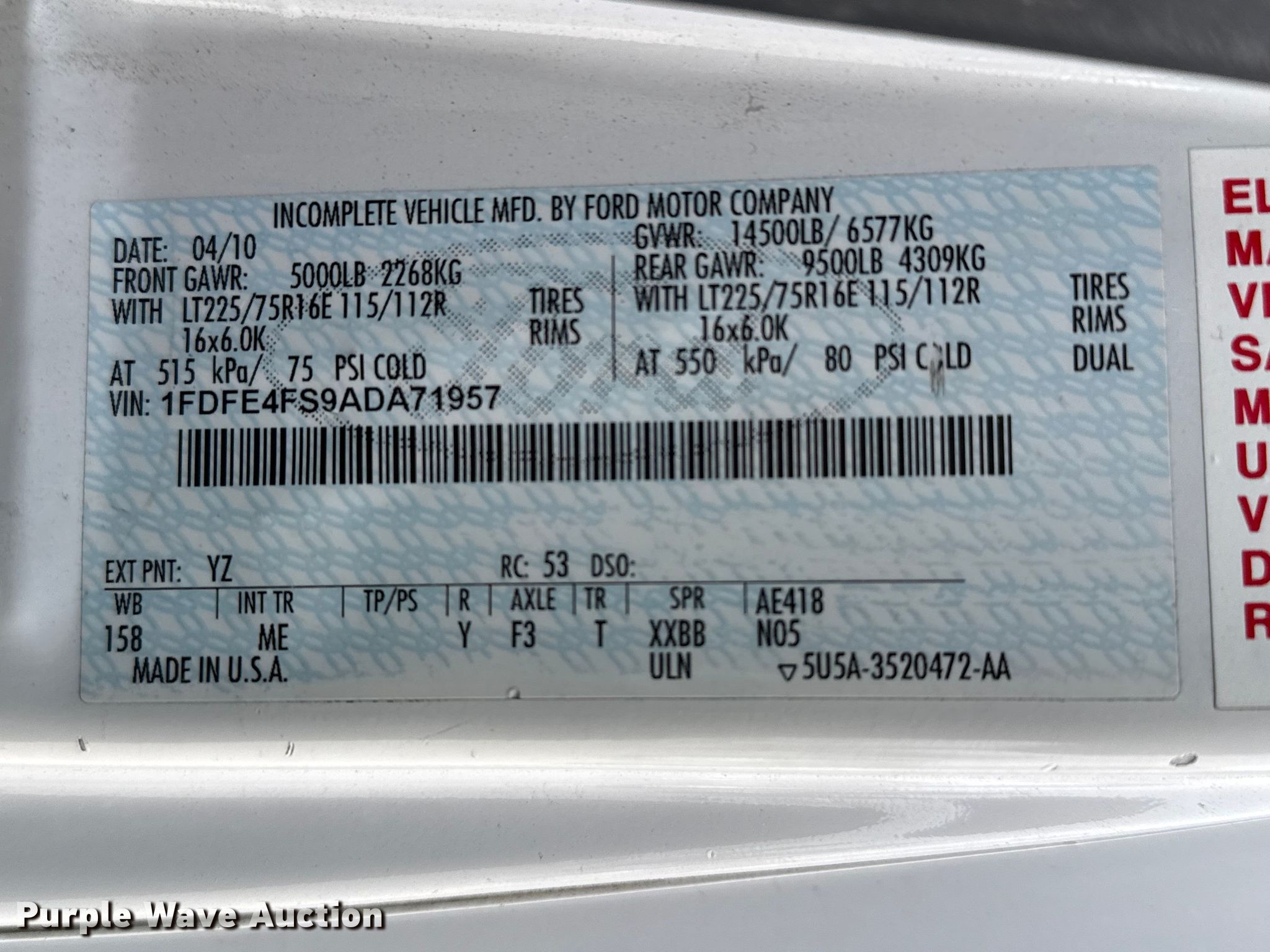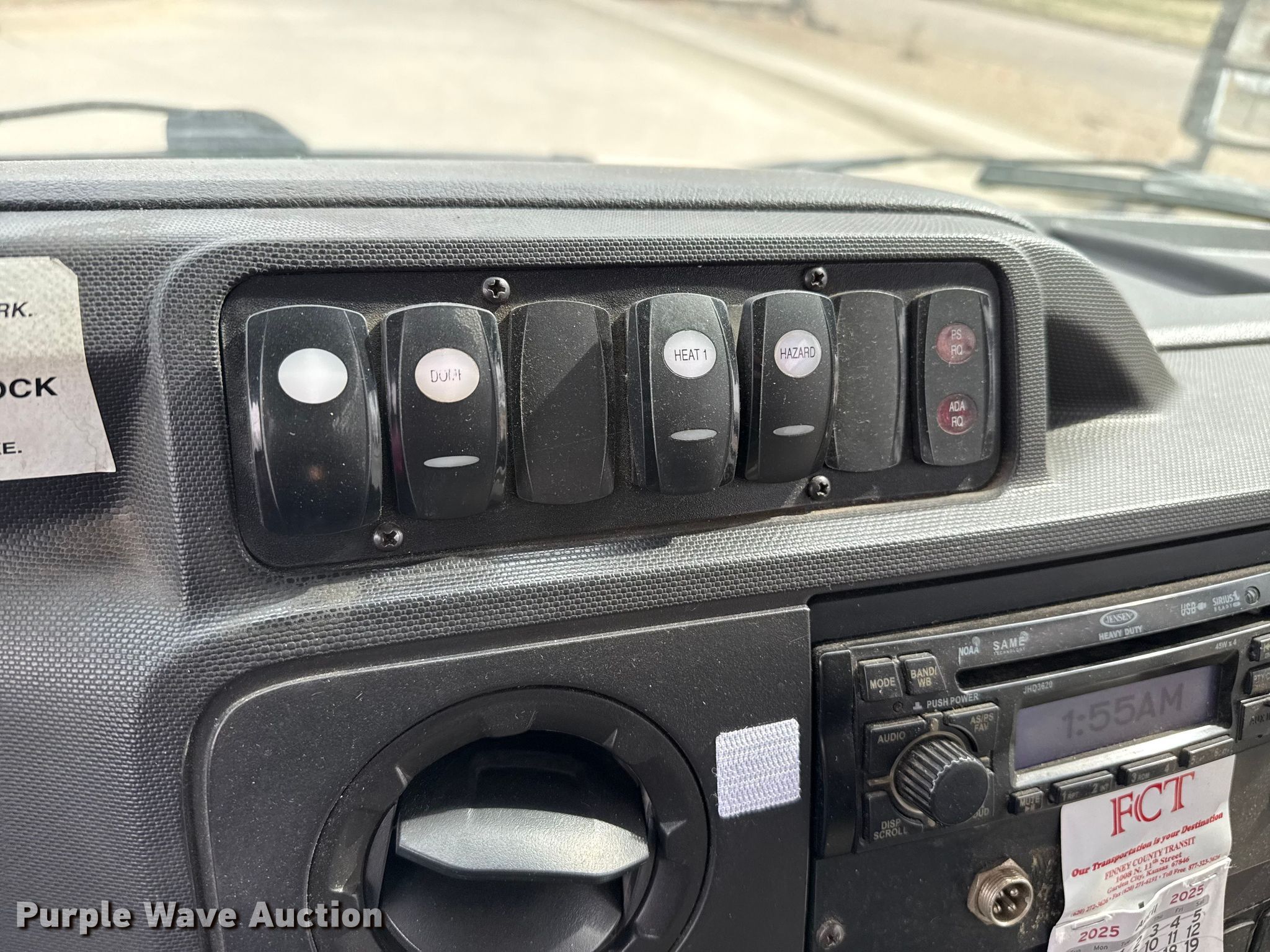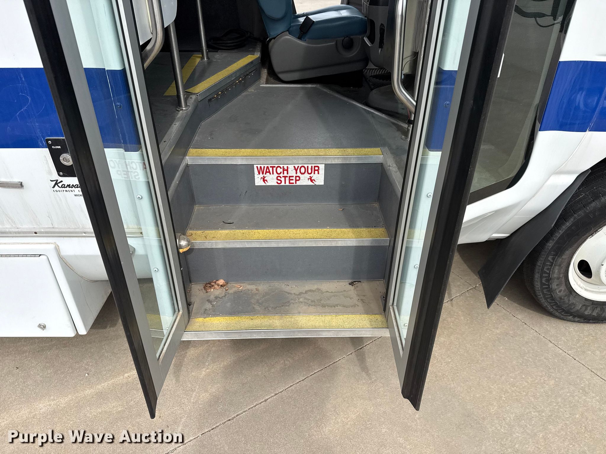 2010 Ford E450 Super Duty shuttle bus. Miles: 144,503 on odometer, VIN: 1FDFE4FS9ADA71957. Engine Displacement: 6.8L, Cylinders: 10, Fuel type: Gas. Transmission Automatic. Chassis Axles: Single, Suspension: Spring, Brakes: Hydraulic, GVWR: 14,500 lbs, Wheelbase: 158". Interior AC, Heat, Cruise control, Passengers: 16, Wheelchair lift. Tires Size: 225/75R16. Notes Jump start required during on-site data collection. Kansas title. Title distribution may be delayed up to 14 days from verification of funds. Finney County. Garden City, KS 67846