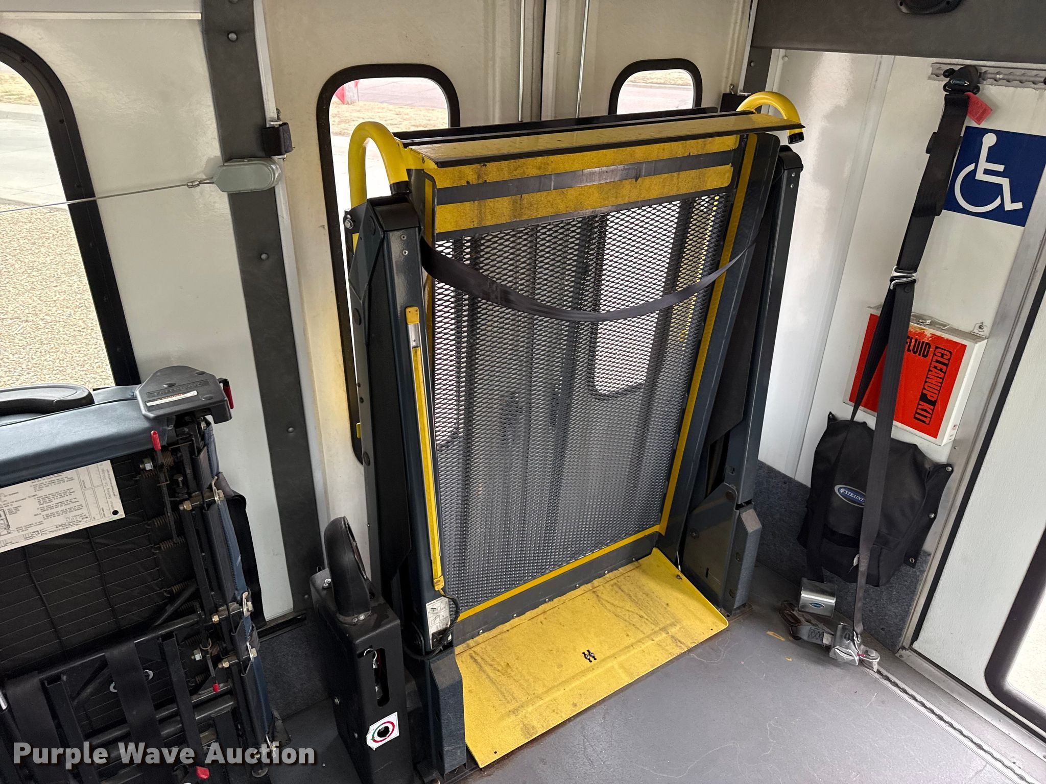 2010 Ford Eldorado Aerotech E450 Super Duty shuttle bus. Miles: 147,313 on odometer, VIN: 1FDFE4FS9ADA71960. Engine Displacement: 6.8L, Cylinders: 10, Fuel type: Gas. Transmission Automatic. Chassis Axles: Single, Suspension: Spring, Brakes: Hydraulic, GVWR: 14,500 lbs, Wheelbase: 158". Interior AC, Heat, Cruise control, Passengers: 16, Wheelchair lift. Tires Size: 225/75R16. Notes Dash warning indicator: Check engine, Jump start required during on-site data collection, Intake manifold gasket leaks, Unit must be towed or hauled. Kansas title. Title distribution may be delayed up to 14 days from verification of funds. Finney County. Garden City, KS 67846