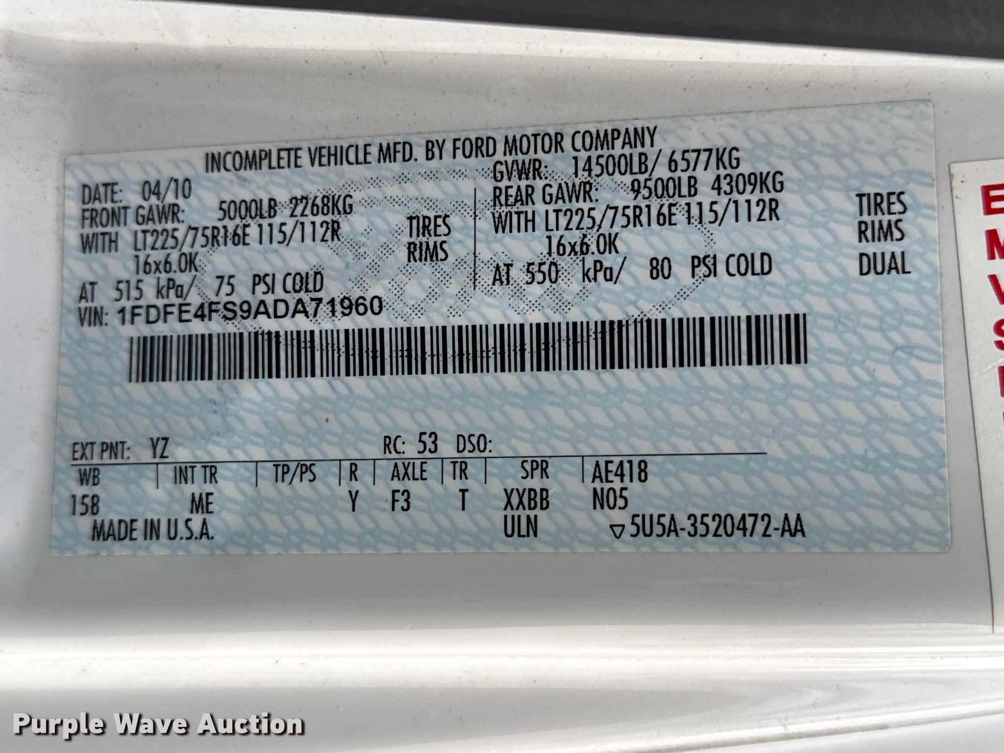 - VIN: 1FDFE4FS9ADA71960