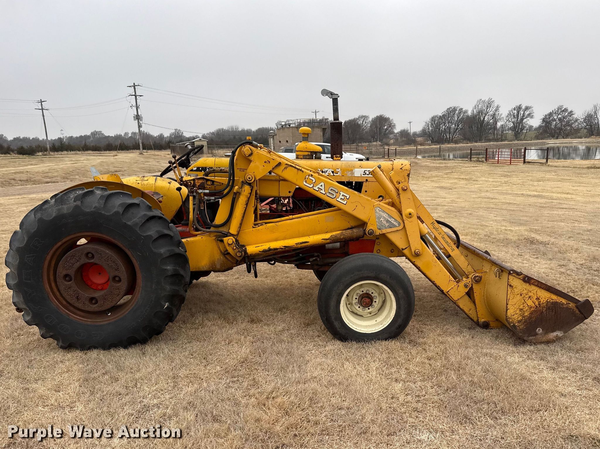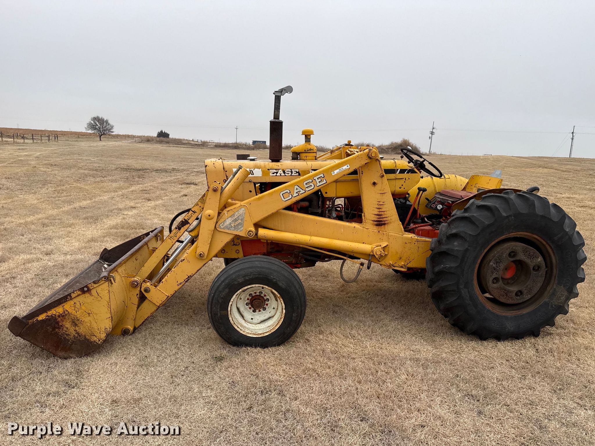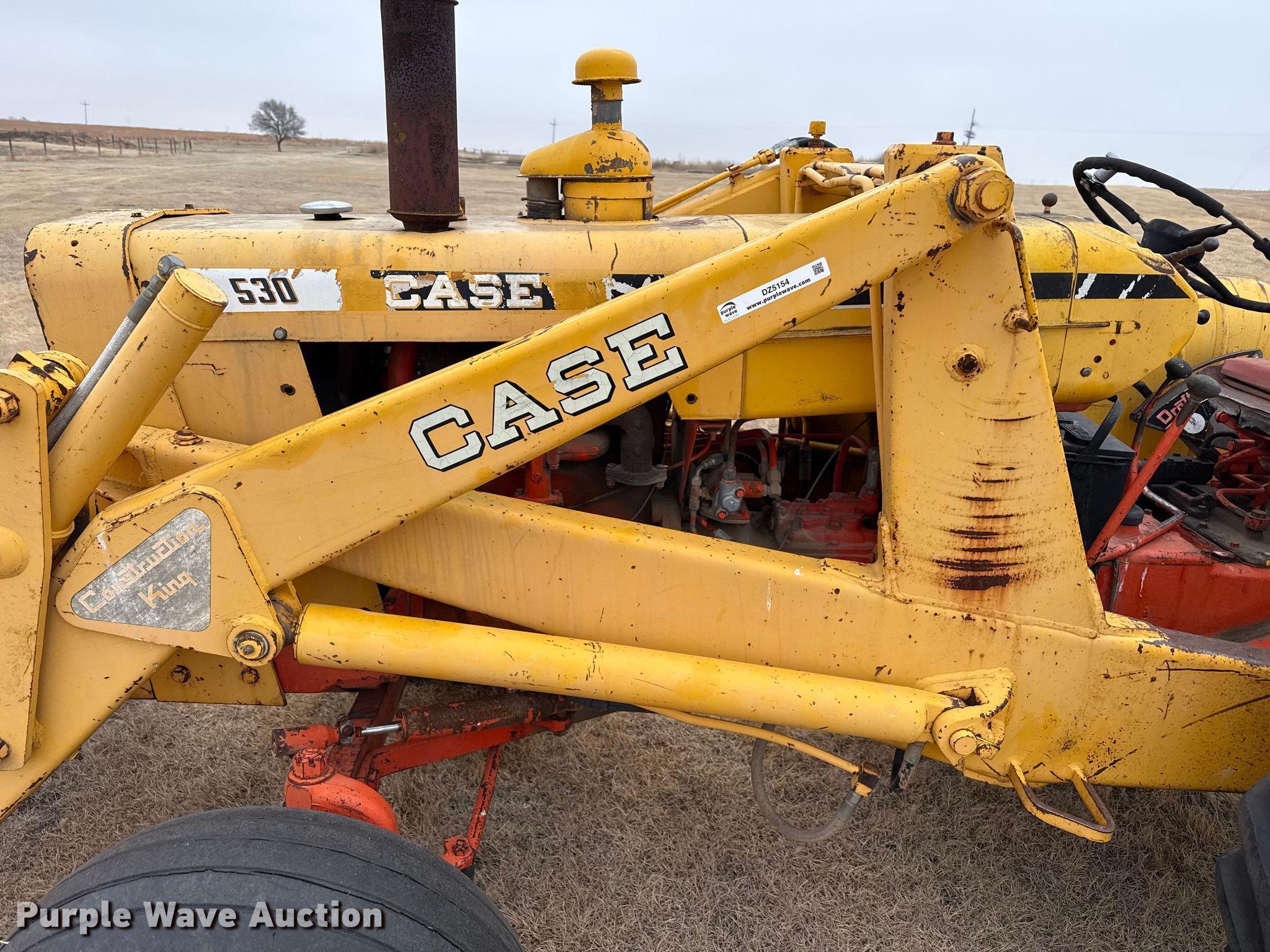 1964 J.I. Case 530 tractor. Hours: 1,625 on meter, Serial: 8235065. Engine Cylinders: 4, Fuel type: Gas. Transmission Manual, 5F - 1R. Features PTO: 540, Three point Top link, Loader Case Construction King, Self-leveling, Controls: Two-lever, Bucket Width: 74".. Tires Front: 11L-15, Rear: 14.9-24, Wheel weights: 2. Notes Throttle cable needs replaced, Choke cable needs replaced. City of Mullinville. Mullinville, KS 67109