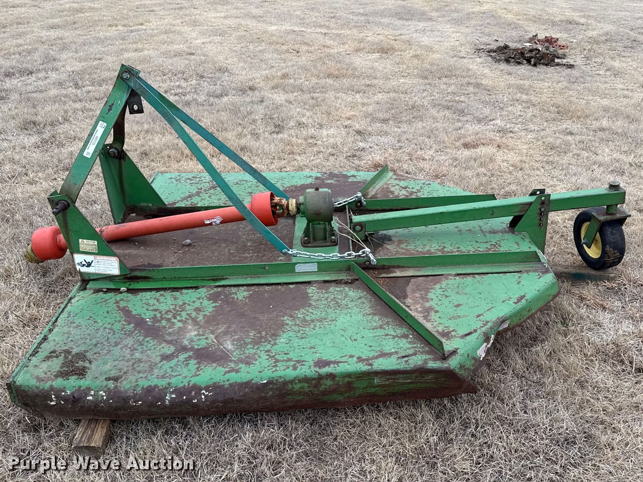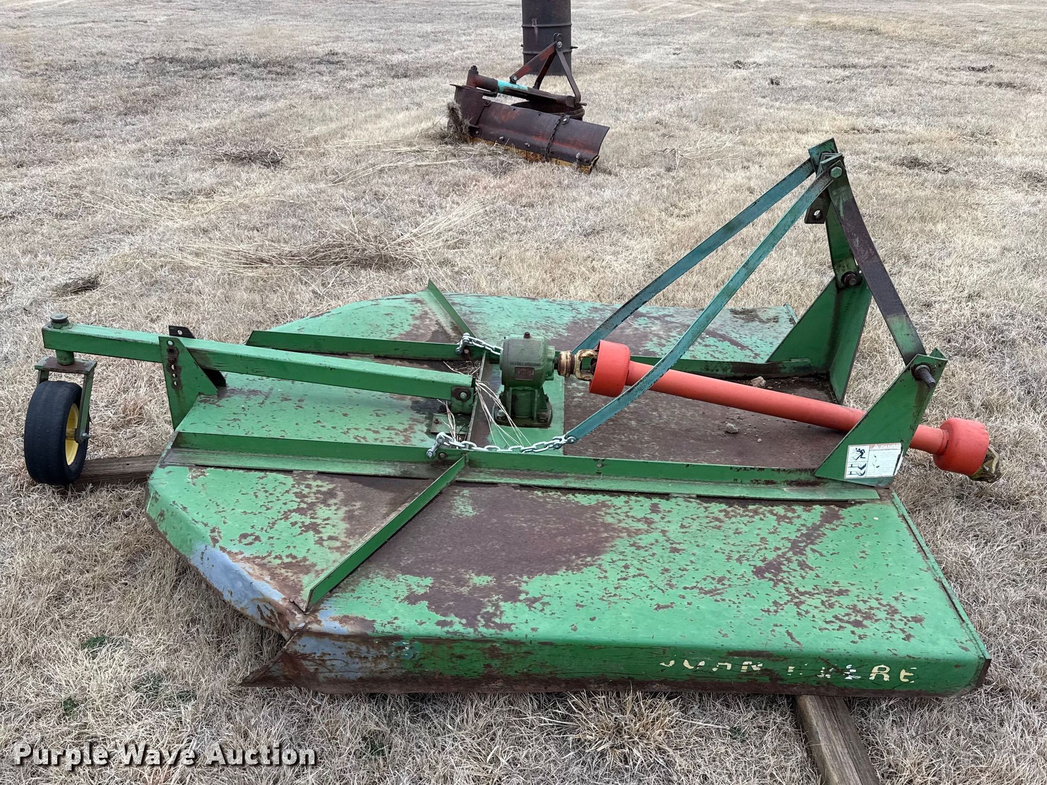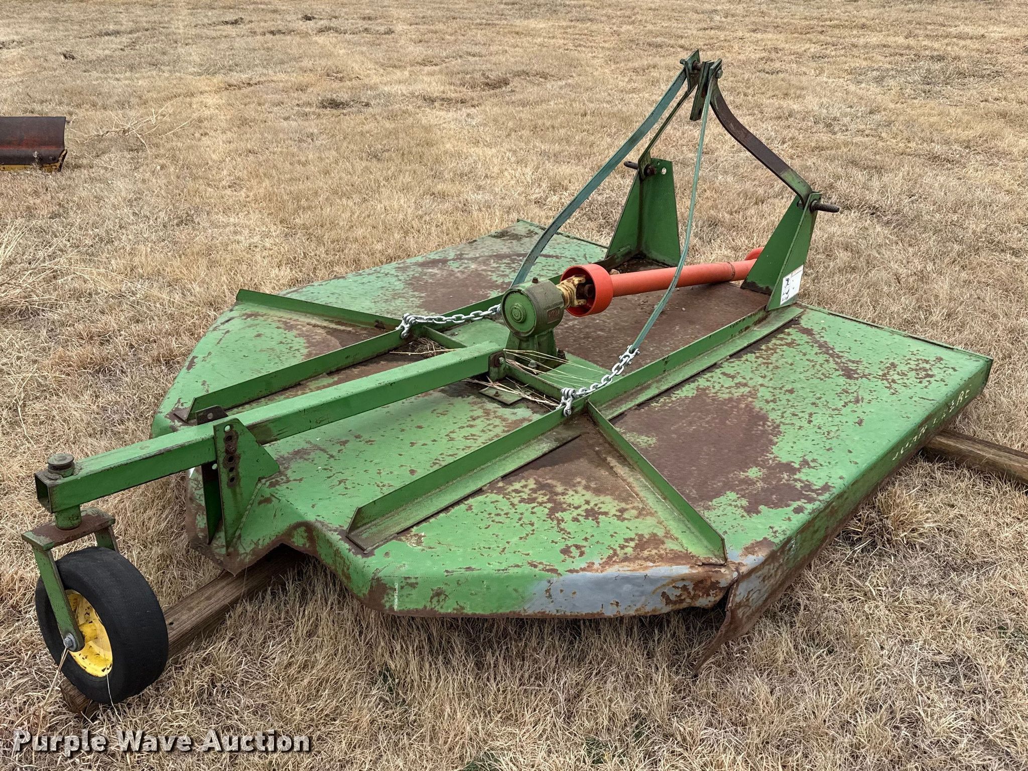 Purple Wave is selling a used Mower, Cutter, Shredder in Kansas. This item is a John Deere rotary mower with the following: Width: 6', PTO: 540, Hitch: Three point