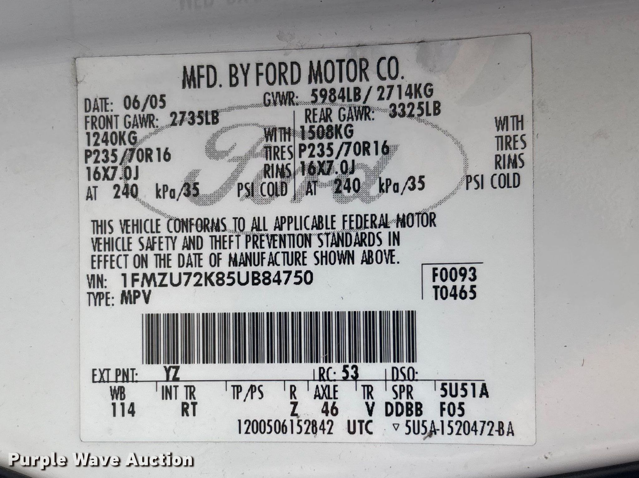 - VIN: 1FMZU72K85UB84750