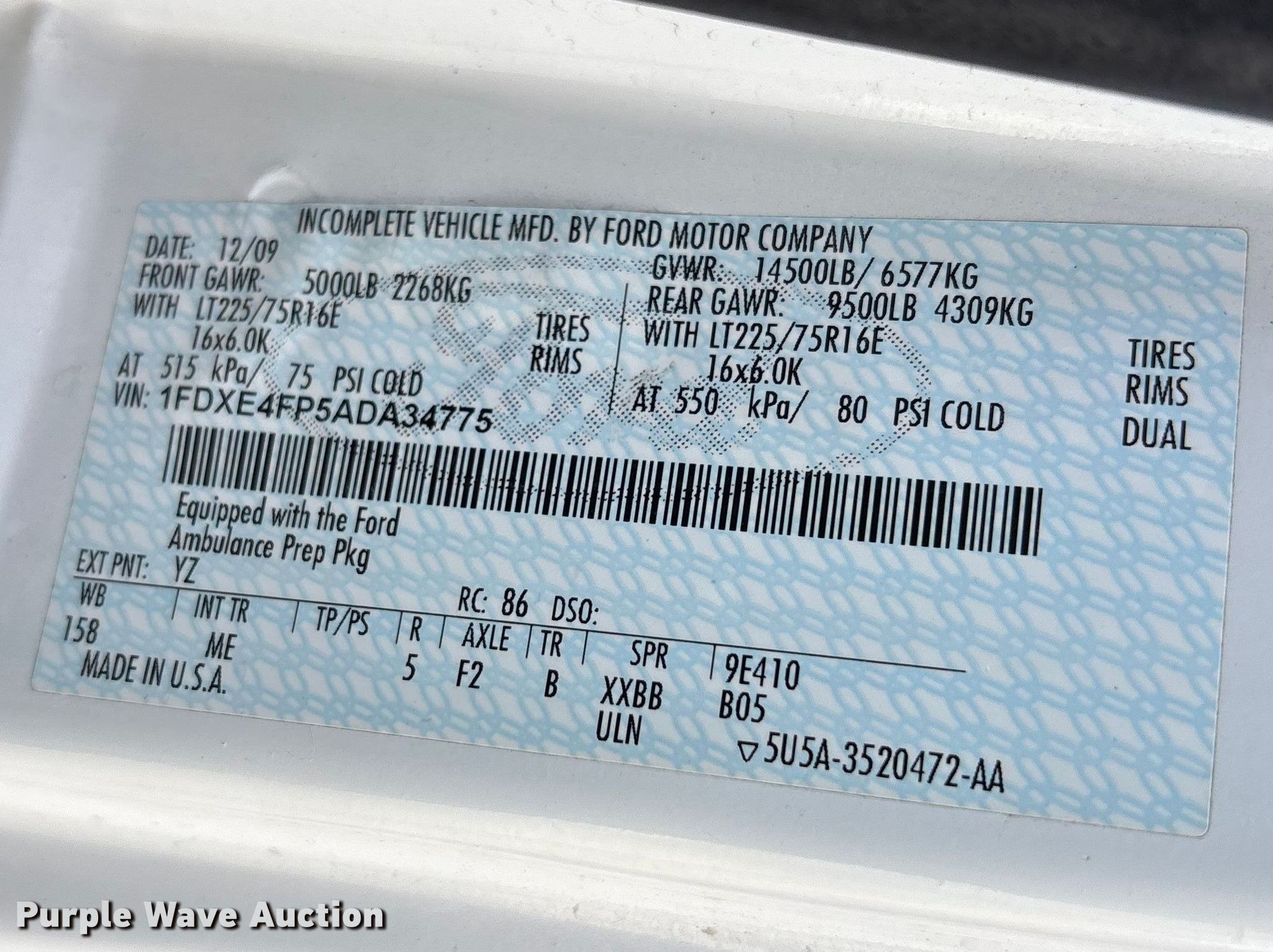 - VIN: 1FDXE4FP5ADA34775