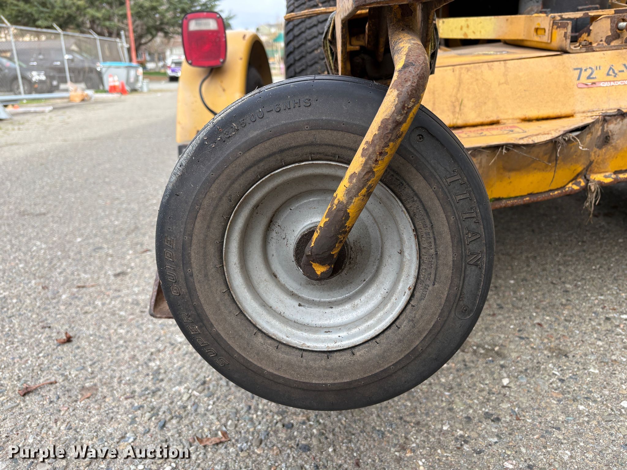 2008 Hustler 4600 ZTR lawn mower. Cutting width: 72", Serial: 08120236. Engine Kubota V1505, Displacement: 1.5, Cylinders: 4, Fuel type: Diesel. Transmission Hydrostatic. Features Self- propelled, Mower deck Width: 72", Hustler 925107, Serial: 08091980. Tires Front: 26x12.00-12, Rear: 13x6.50-6. Notes Non-operational mower deck. City of San Bruno/Maintenance and Operations. San Bruno, CA 94066