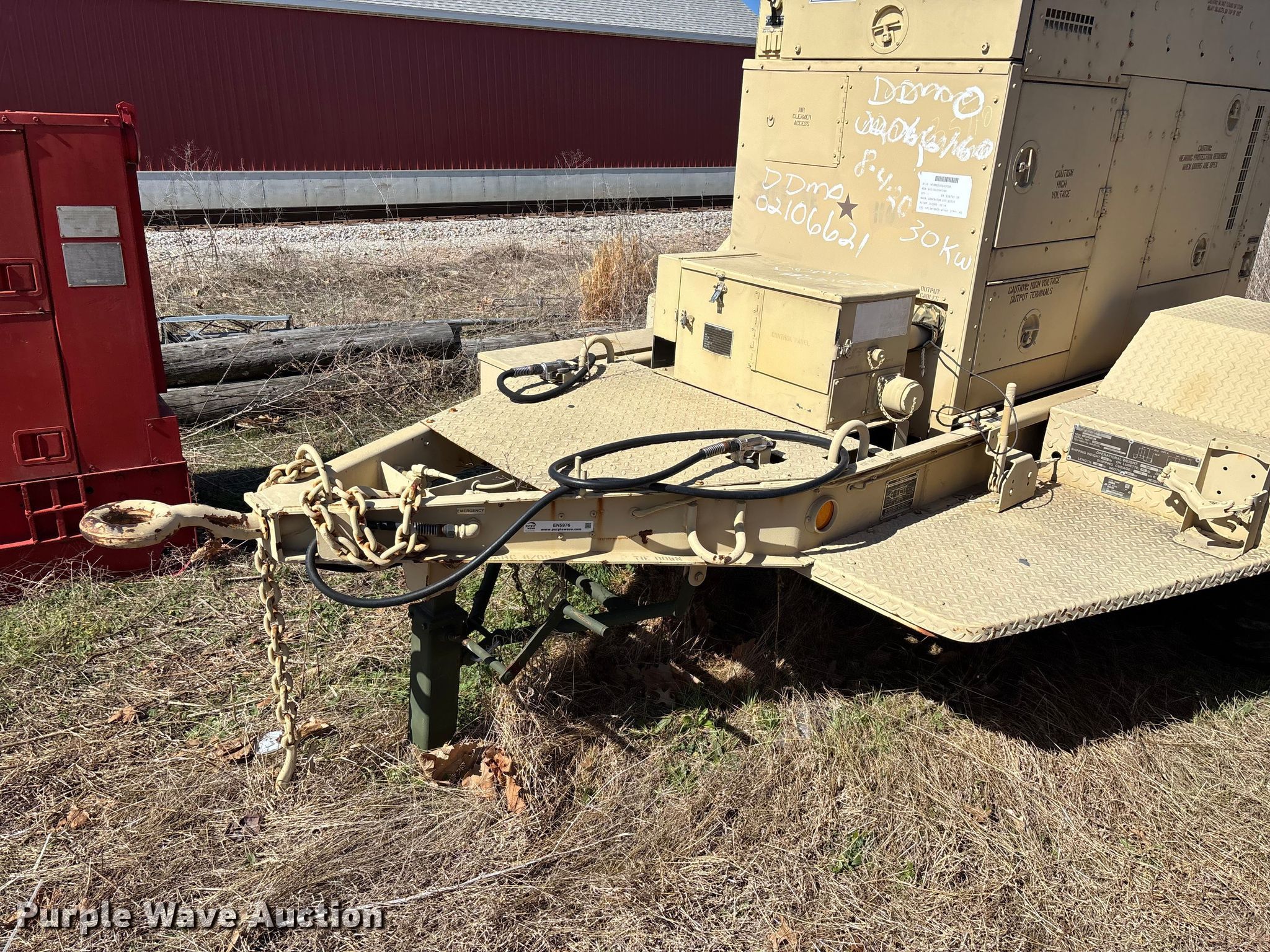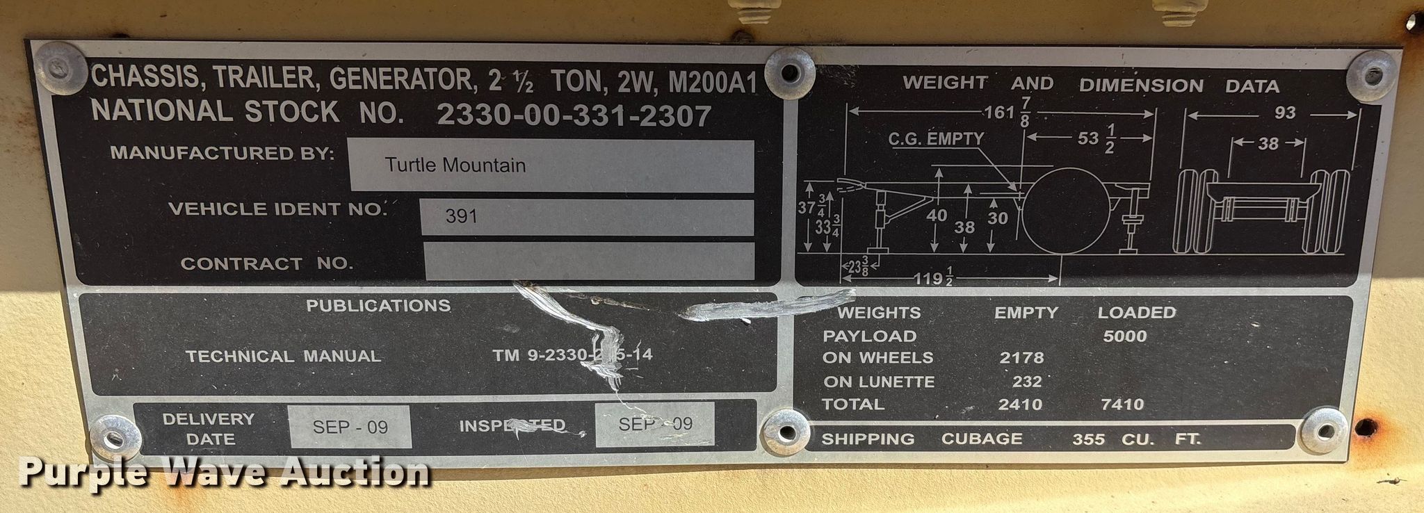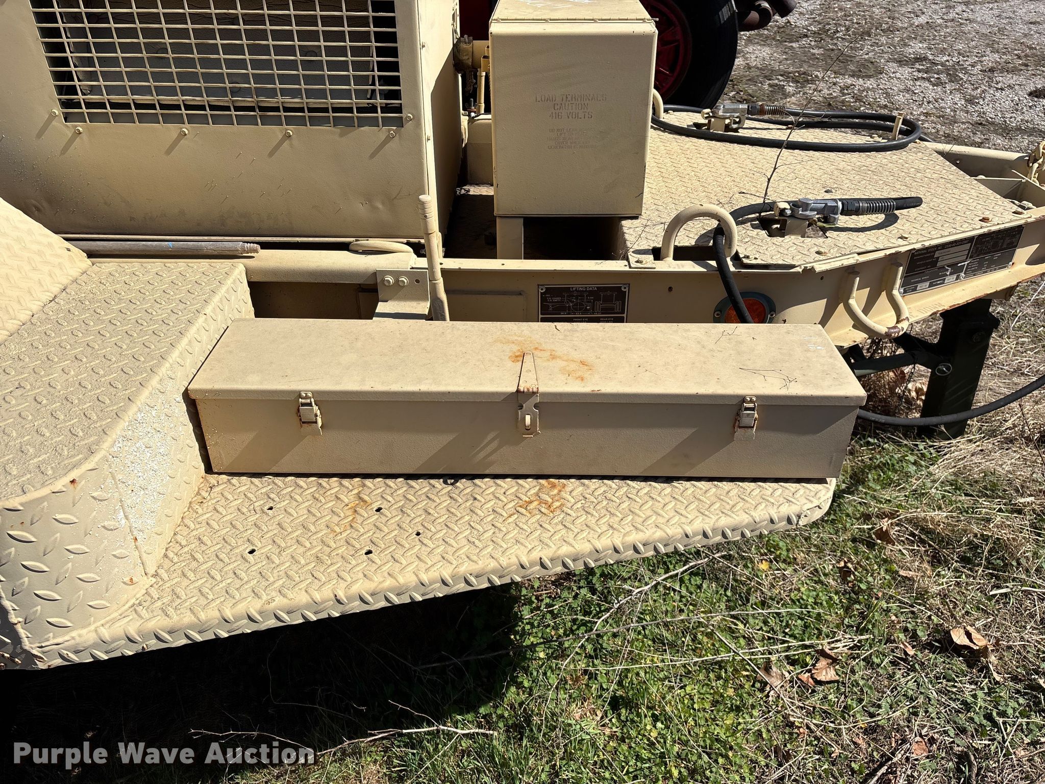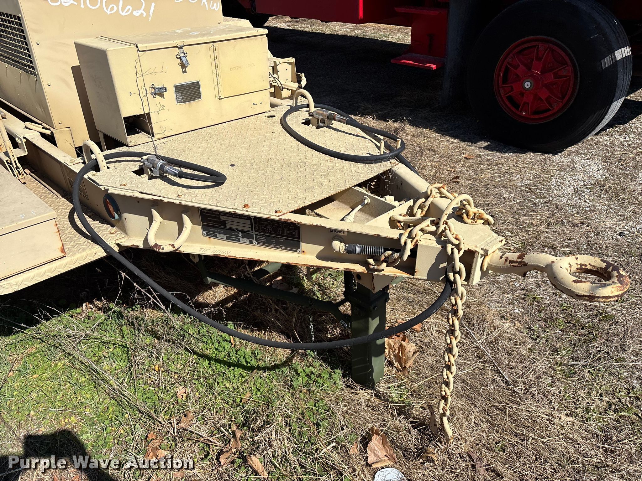 1993 U.S. Department of Defense MEP-805A generator. Hours: 408 on meter, VIN: 391, Serial: RHZ00180. Engine John Deere, Serial: SE4039T358094, Cylinders: 4, Fuel type: Diesel. Features Generator Military Design 88-21007, Phase: Three, kW: 25/30, kVA: 31.2/37.5, Electric start, Fuel tank. Trailer 2009 Turtle Mountain, 14' L x 8" W, Hitch: Pintle, Suspension: Spring, Brakes: Air over hydraulic, Axles: Single, Tire size: 9.00-20. Notes Dead battery, Unknown operating condition. This is worksite support equipment and will not come with a title. Transfer of ownership documentation will be a bill of sale. Purdy Fire Protection District. Purdy, MO 65734