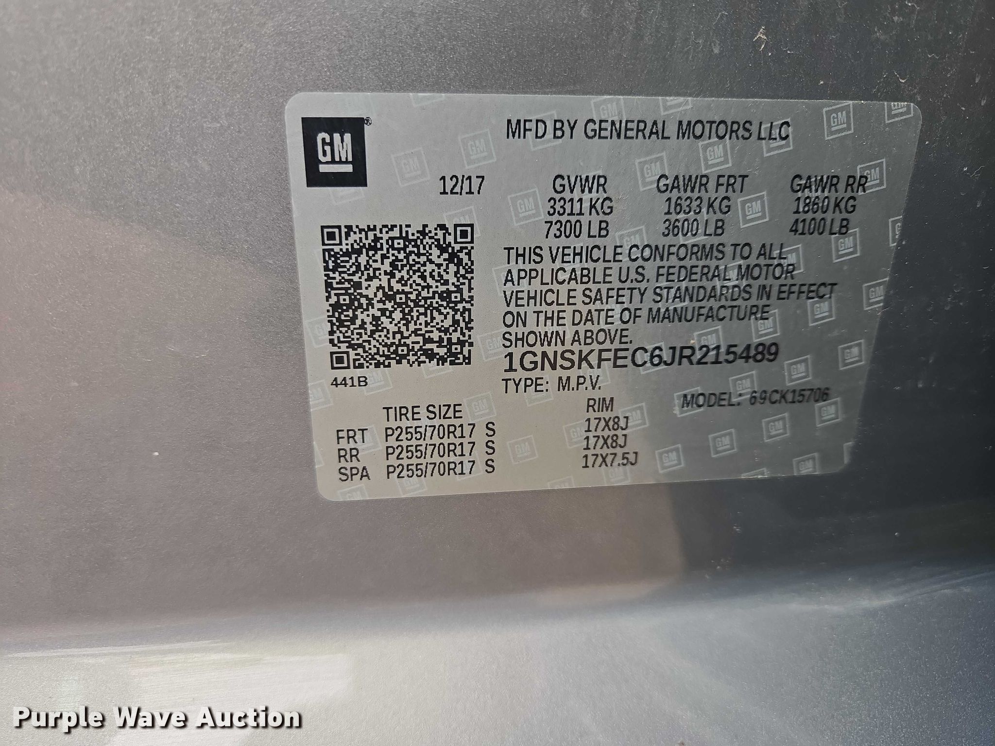 • VIN: 1GNSKFEC6JR215489