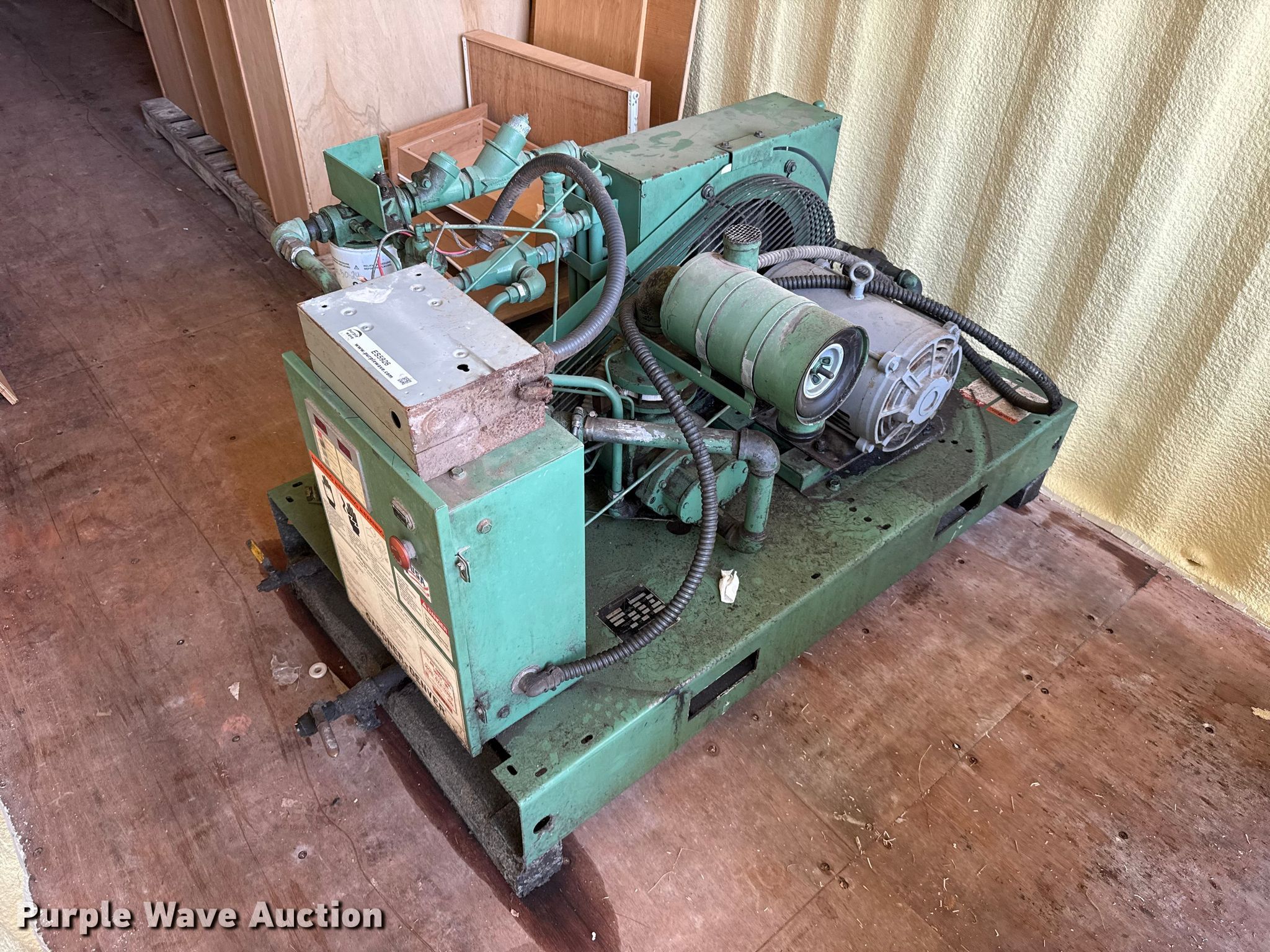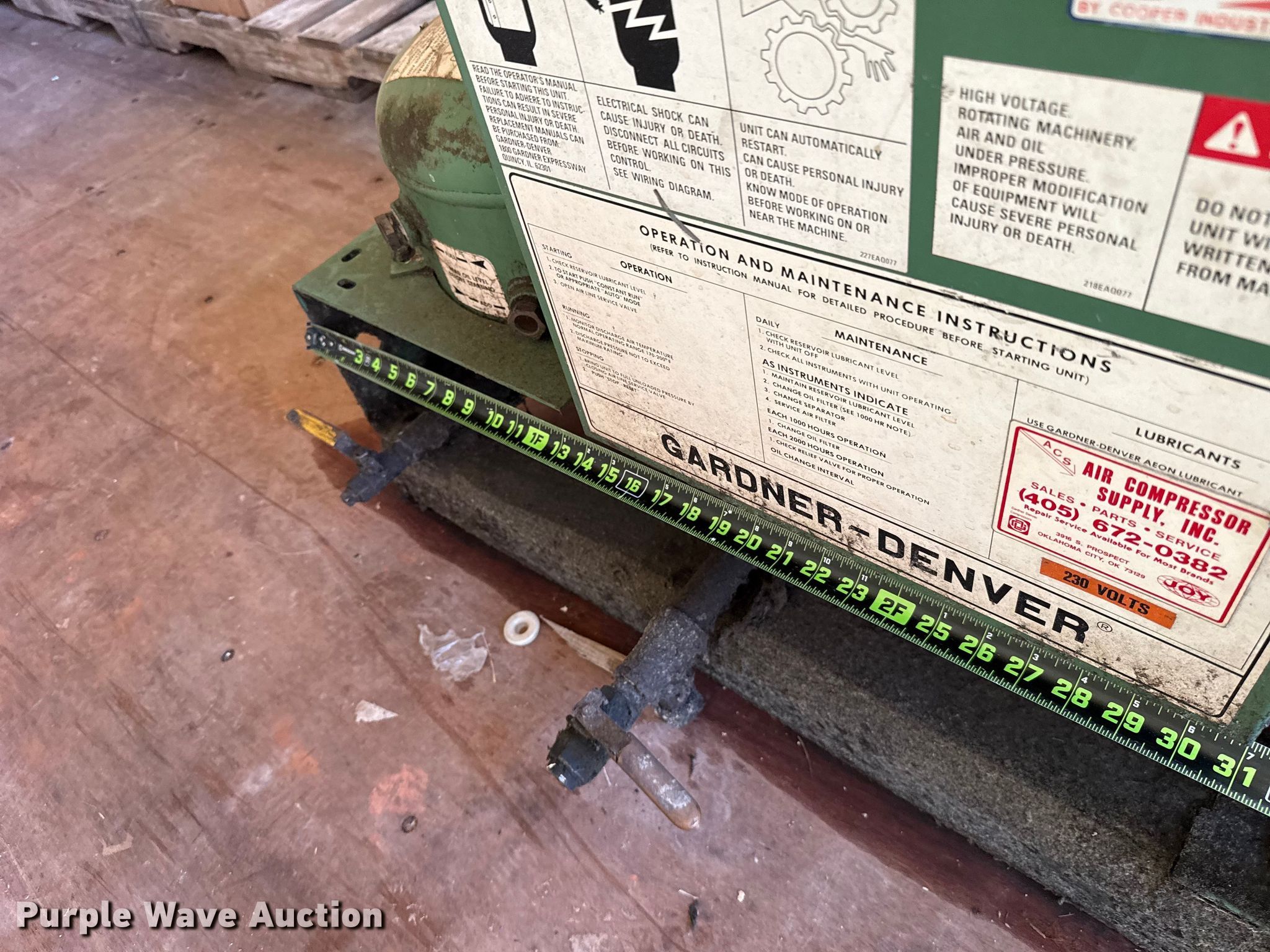 Purple Wave is selling a used Air Compressor in Oklahoma. This item is a Gardner-Denver EJB0DB air compressor with the following: Hours: 66,162 on meter, Serial: ABBAA9B