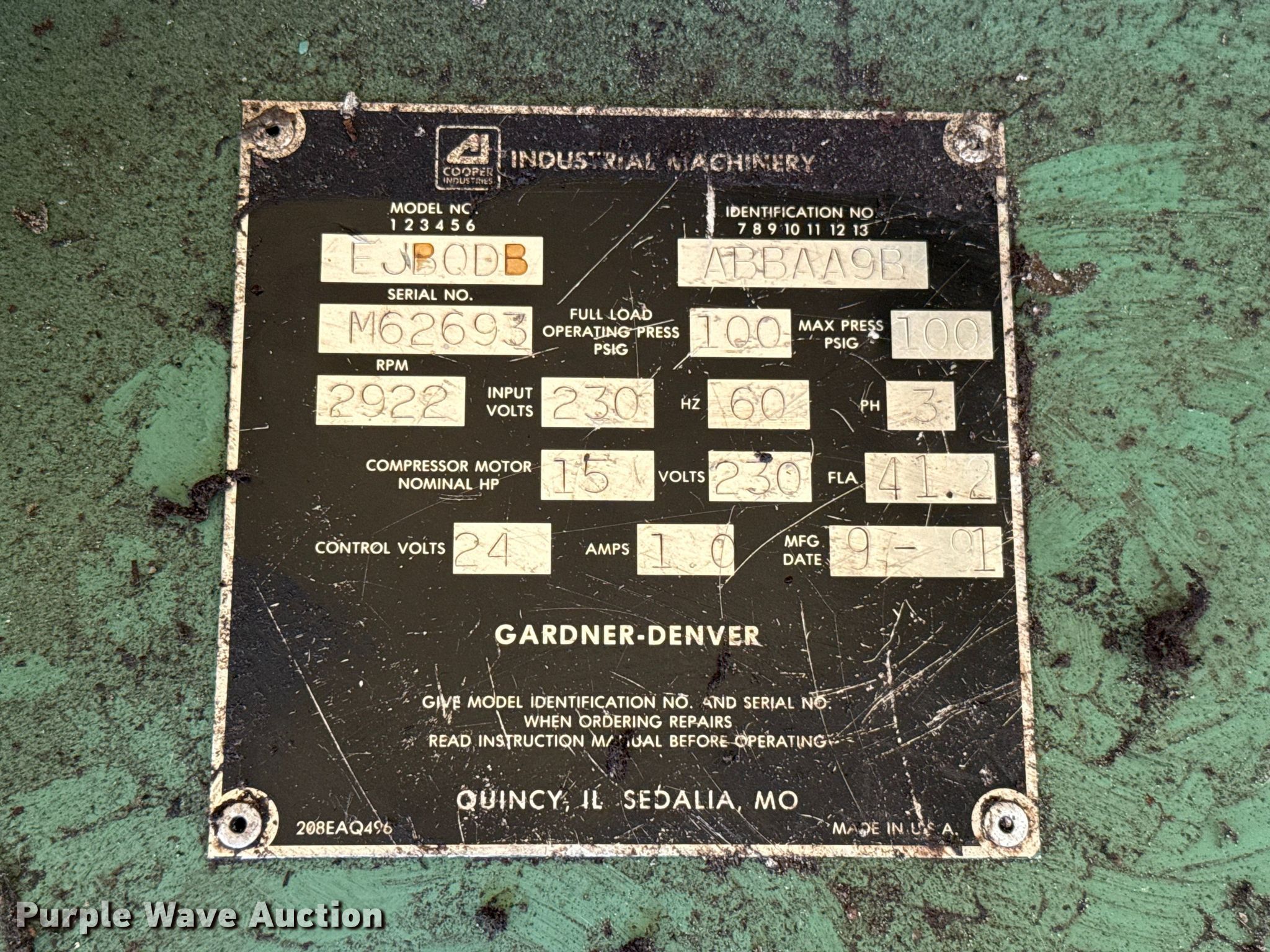 This Gardner-Denver EJB0DB air compressor will sell to the highest bidder regardless of price.