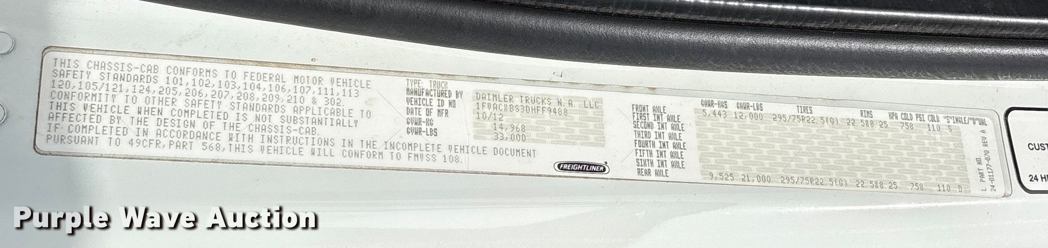 • VIN: 1FVACXBS3DHFF9488