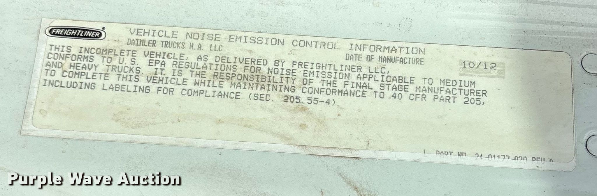 2013 Freightliner Business Class M2 dump truck. Miles: 380,731 on odometer, Hours: 12,685 on meter, VIN: 1FVACXBS3DHFF9488. Engine Cummins ISC, Displacement: 8.3L, Cylinders: 6, Fuel type: Diesel. Transmission Automatic. Chassis Axles: Single, Suspension: Spring, Brakes: Air, PTO, GVWR: 33,000 lbs FAWR: 12,000 lbs, RAWR: 21,000 lbs. Interior AC, Heat, Heated mirrors, Cruise control. Features Bed Dump bed, Warren F-10, Length: 10', Width: 8', Capacity: 6 cu.yd., Side height: 35", Side board height: 6", Bed type: Steel, Ram: Single, End gate: Air operated. Tires Size: 297/75R22.5. Notes Dash warning indicator: Check engine. Texas title. Seller is a government entity who will be assigning and distributing the title. Please contact the seller for distribution questions. Wood County, TX. Winnsboro, TX 75494