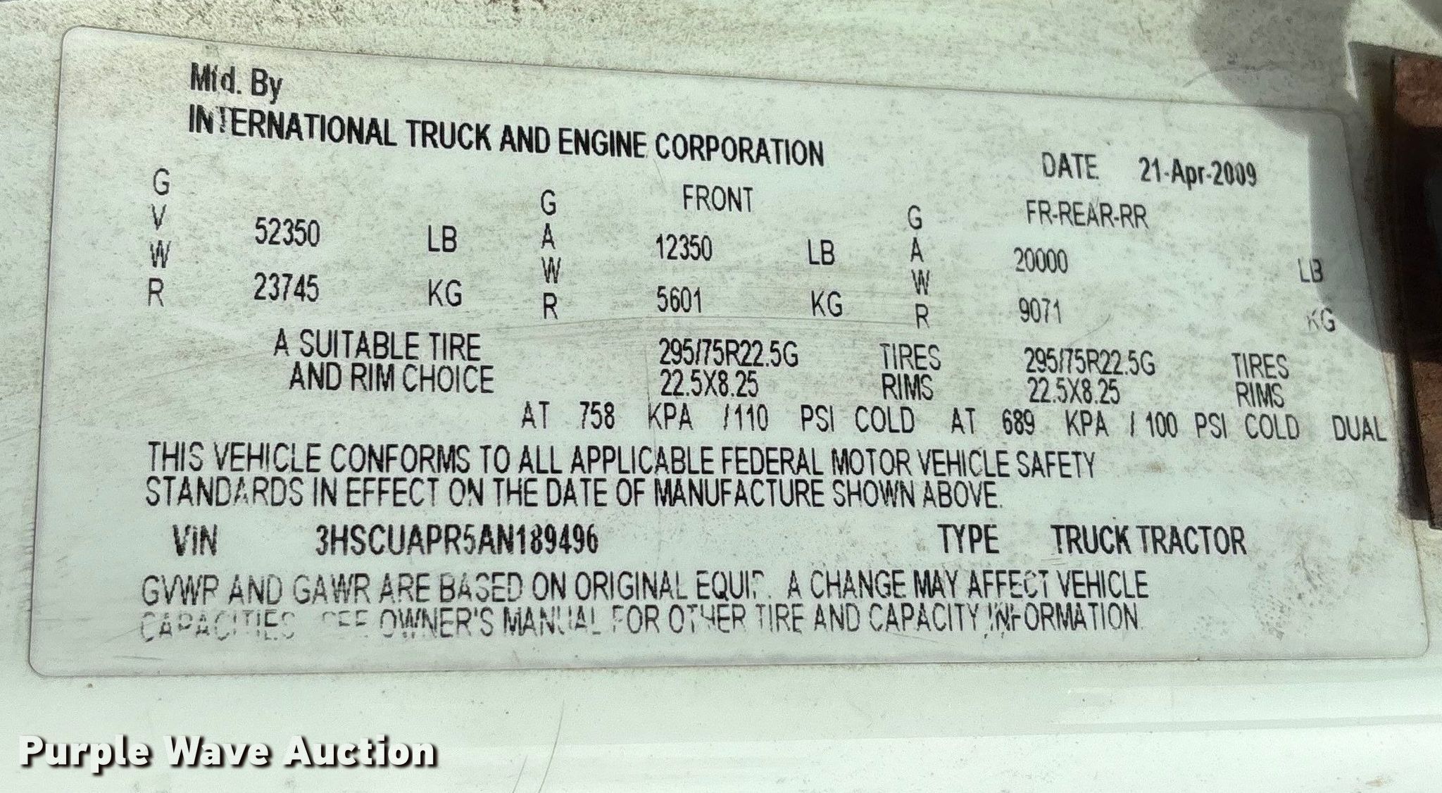 - VIN: 3HSCUAPR5AN189496