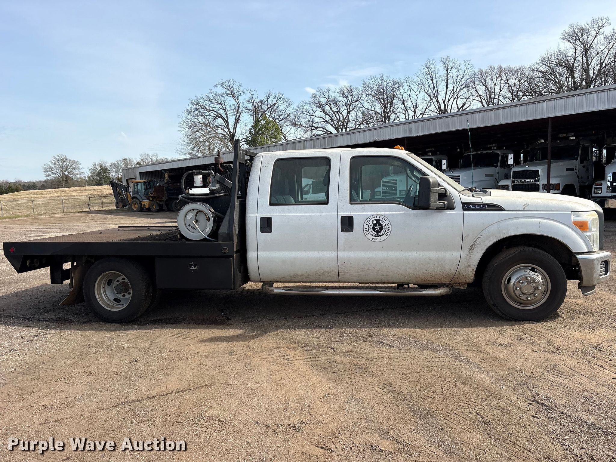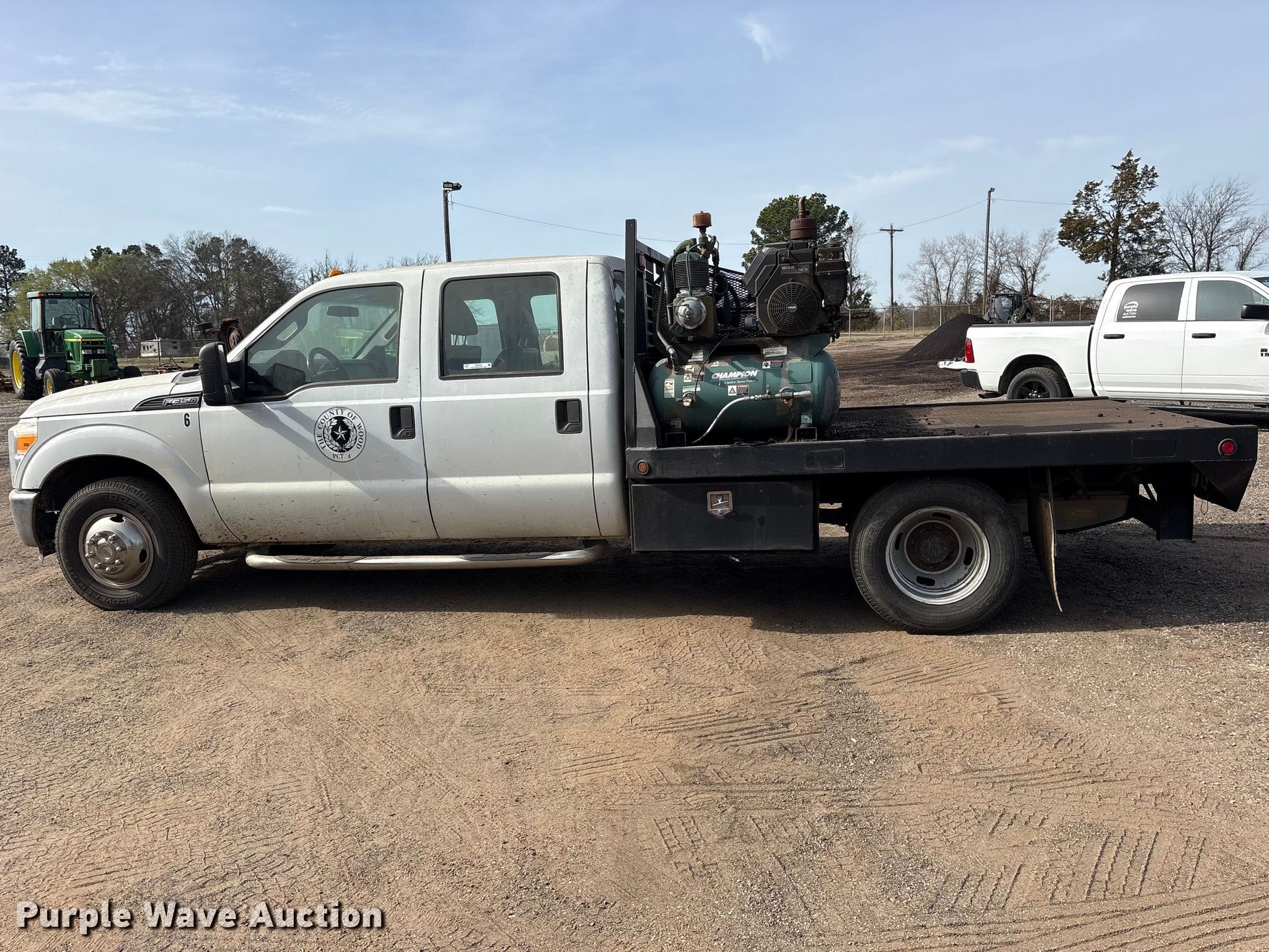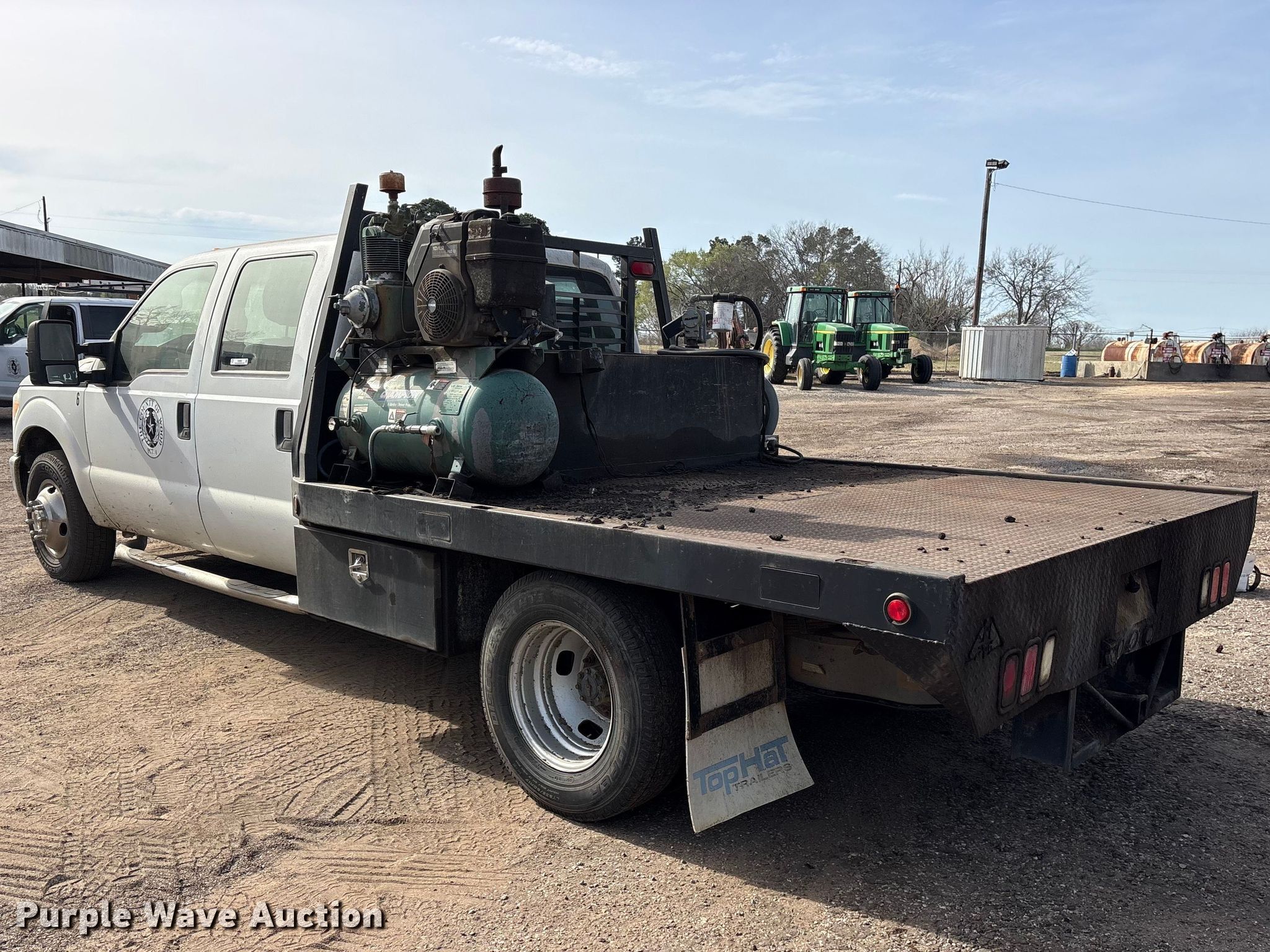 2015 Ford F350 Super Duty Crew Cab flatbed pickup truck. Miles: 222,317 on odometer, VIN: 1FD8W3G62FEA45185. Engine Displacement: 6.2L, Cylinders: 8, Fuel type: Gas. Interior AC, Heat, Cruise control, Auxiliary controls, Brake controller. Features Bed Flatbed, Length: 9', Width: 8', Hitch: Gooseneck. Tires Size: 235/80R17. Notes Hose reel not included, Fuel tank not included, Air compressor not included. Texas title. Seller is a government entity who will be assigning and distributing the title. Please contact the seller for distribution questions. Wood County, TX. Winnsboro, TX 75494