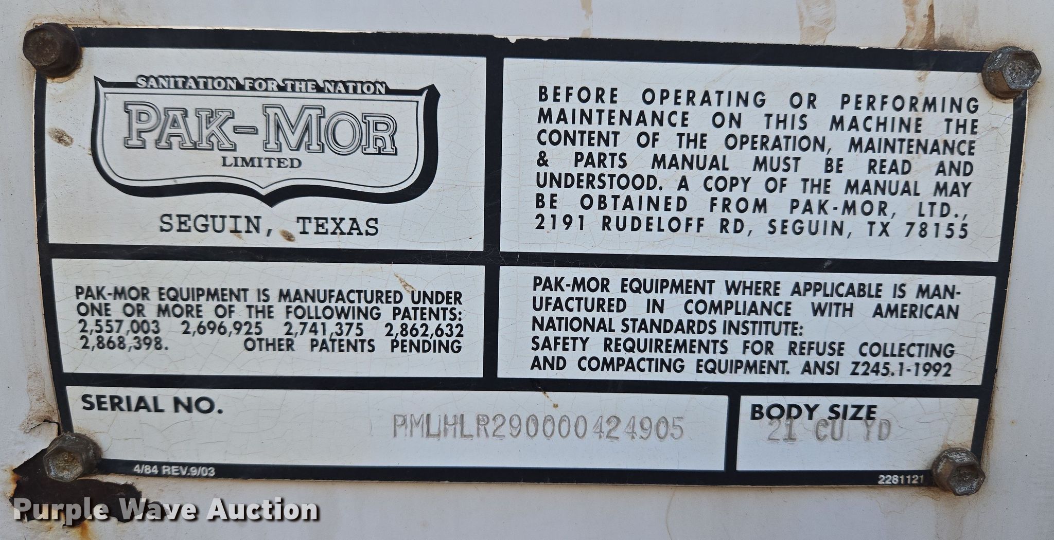 2006 Freightliner M2 refuse truck. Miles: 109,194 on odometer, VIN: 1FVACXDC16HW25434. Engine Caterpillar C7, Displacement: 7.2L, Cylinders: 6, Fuel type: Diesel. Transmission Automatic. Chassis Axles: Single, Suspension: Spring, Brakes: Air, PTO, GVWR: 33,000 lbs. Interior AC, Heat, Heated mirrors, Cruise control. Features Refuse bed Pak-Mor, Serial: PMLHLR290000424905, Capacity: 21 cu.yd., Load: Side. Tires Size: 11R22.5. Notes Windshield chipped or cracked. Oklahoma title. Seller is a government entity who will be assigning and distributing the title. Please contact the seller for distribution questions. Title distribution may be delayed up to 30 days from verification of funds. Cheyenne, OK 73628