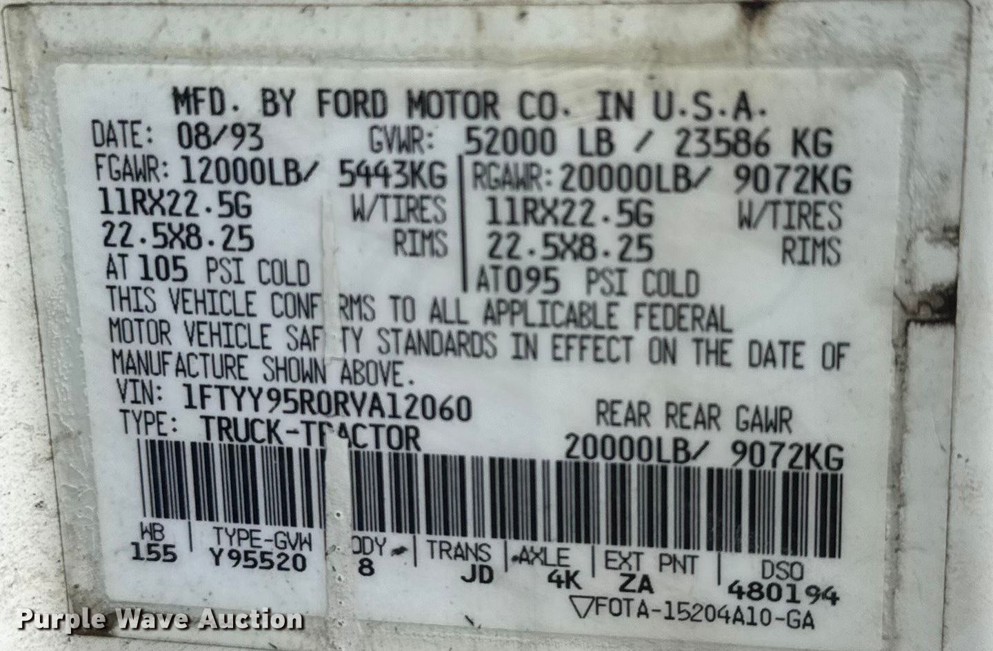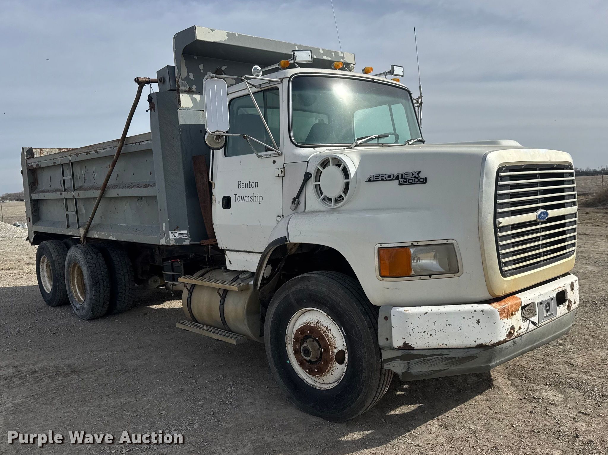 Purple Wave is selling a used Construction Dump Truck in Kansas. This item is a 1994 Ford Aeromax L9000 dump truck with the following: Miles: 2,881 on odometer, Miles: Actual unknown, VIN: 1FTYY95R0RVA12060