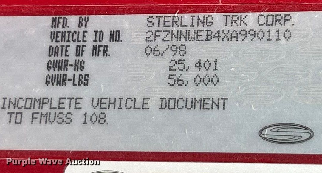 Take a look at this used 1999 Sterling Truck L9511 dump truck being sold on March 31st, 2026 in the Tuesday March 31 Government Auction made by Sterling Truck. Take a look at all of the item information below or take a look at similar auctions for Construction Trucks.