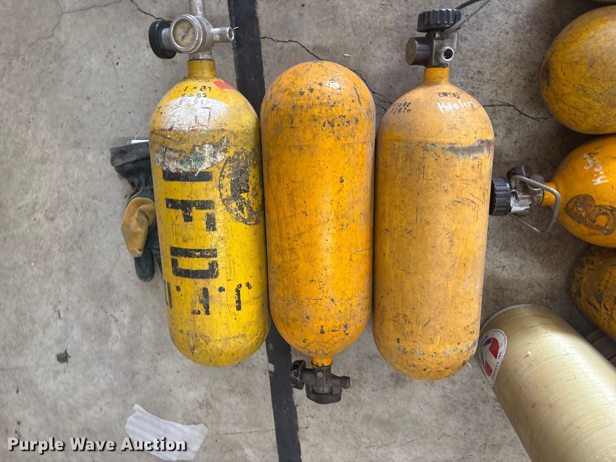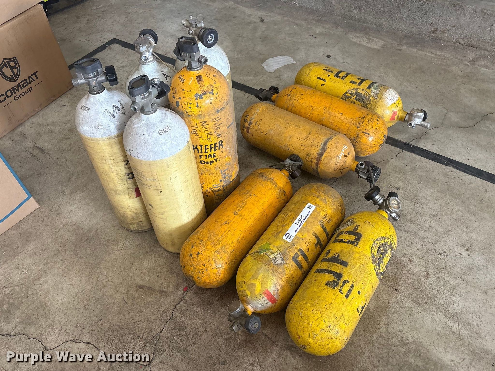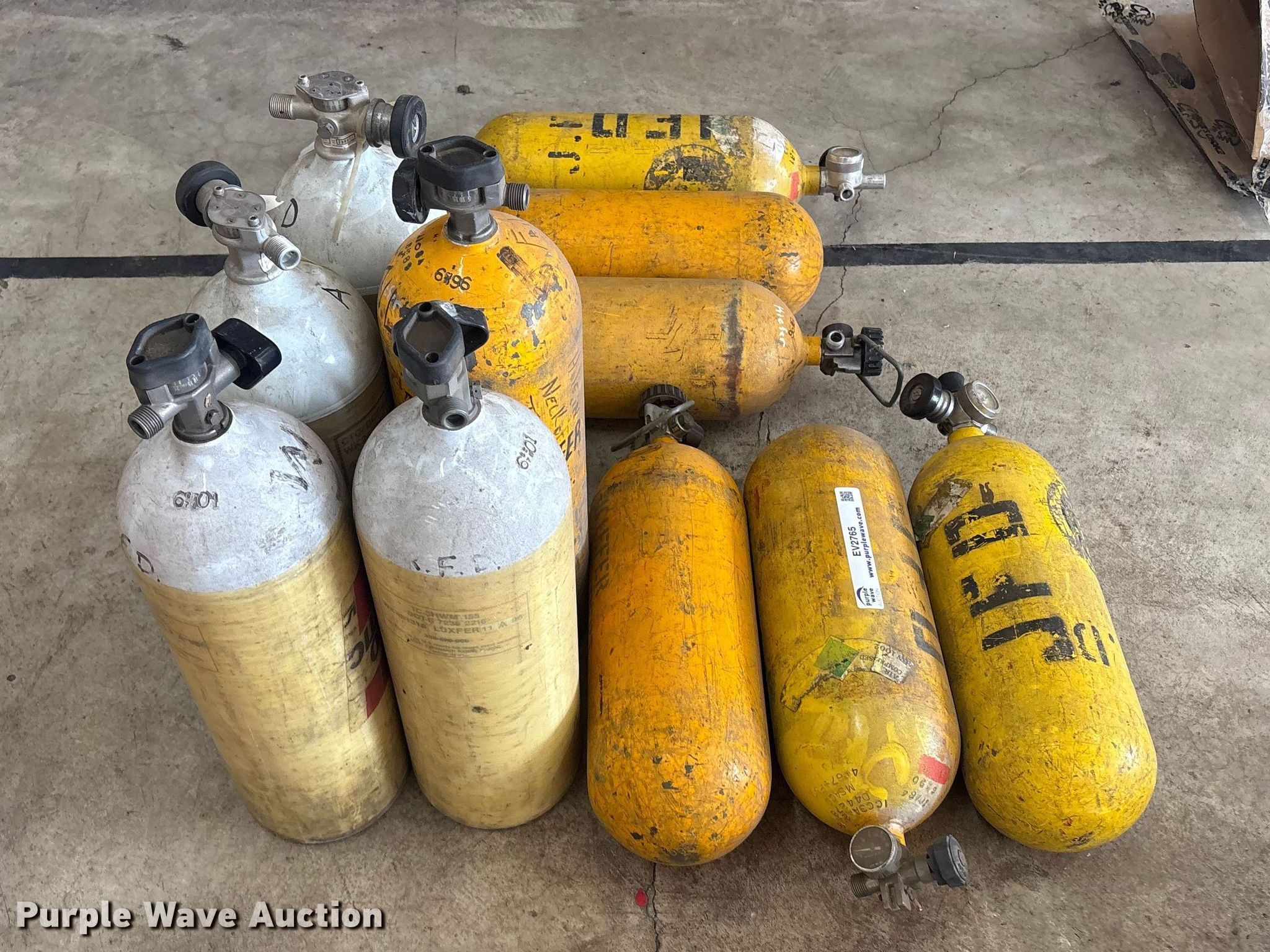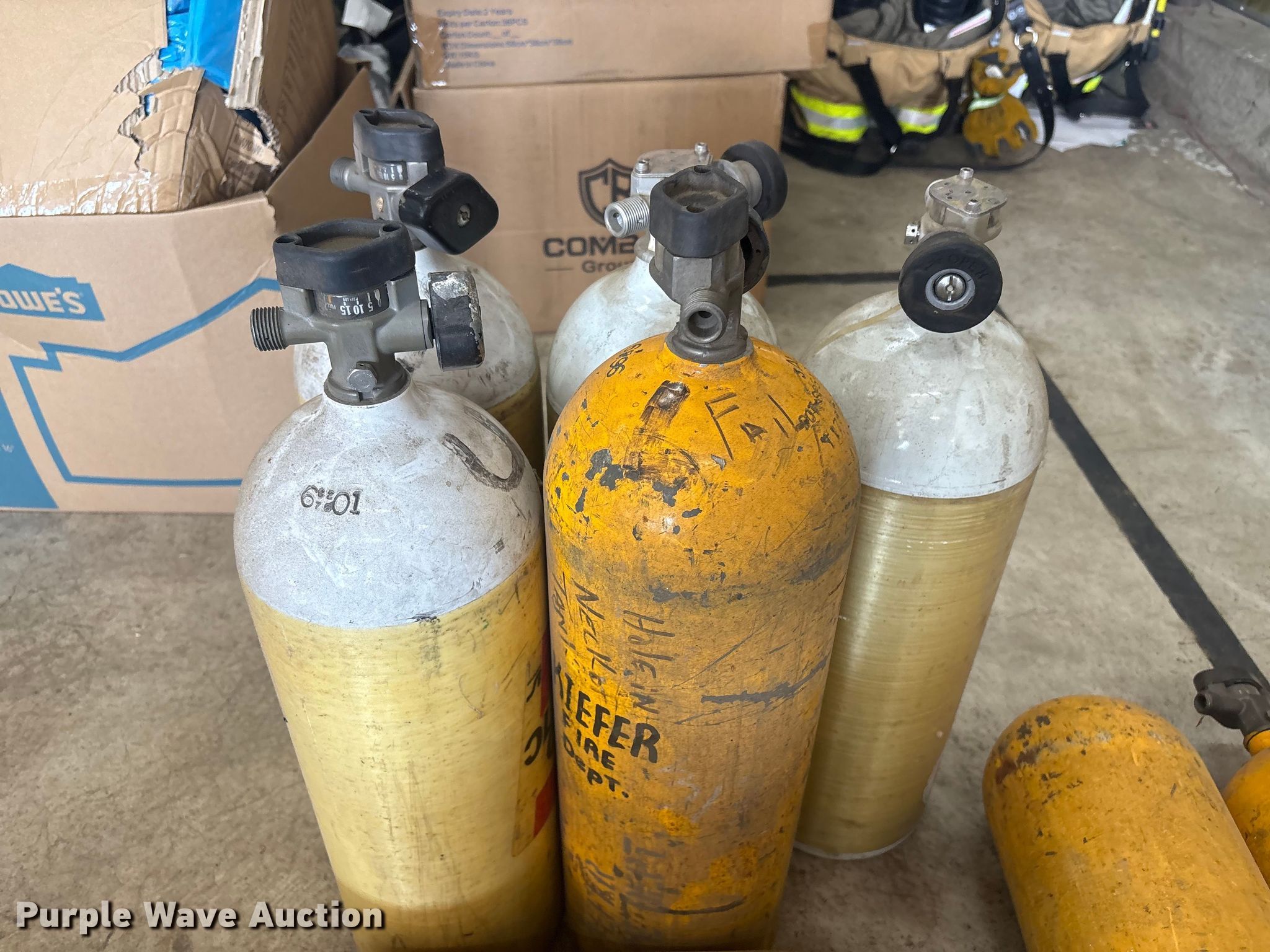 Purple Wave is selling a used Tools in Oklahoma. This item is a Approximately 11 oxygen tanks with the following: Approximately 11 oxygen tanks. Town of Kiefer. Kiefer, OK 74041