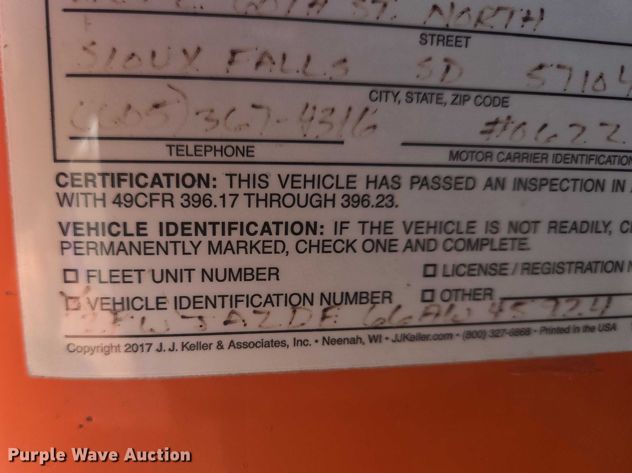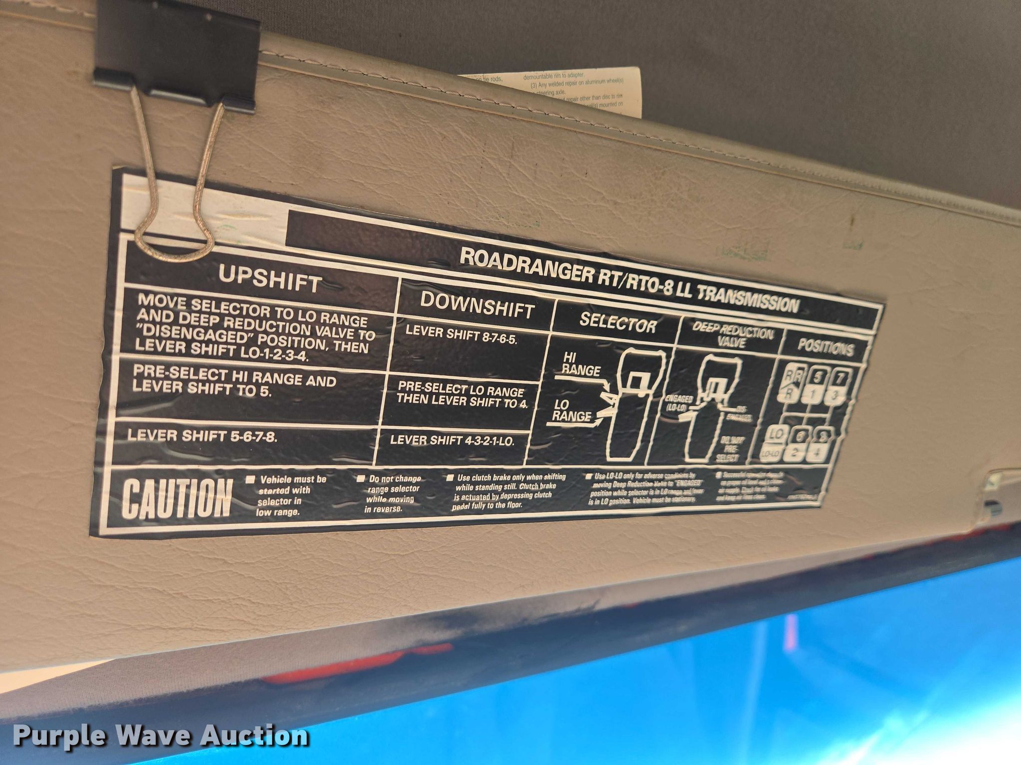 2006 Sterling LT9500 semi truck. Miles: 134,014 on odometer, Hours: 6,918 on meter, VIN: 2FWJAZDE66AW45924. Engine Caterpillar C13 Acert, Displacement: 12.5L, Cylinders: 6, Fuel type: Diesel, Engine brake. Transmission Eaton Fuller, Manual, Speed: 10. Chassis Axles: Triple, Pusher axle, Differential lock: Full, Suspension: Air Dump valves, Brakes: Air, PTO, Wet kit. Interior AC, Heat, Power windows, Power locks, Cruise control, Air ride cab. Features Deck plate: Aluminum, Fifth wheel type: Air operated, Sliding, Fuel tank: Dual. Tires Front: 315/80R22.5, Rear: 12R22.5, Lift axle: 255/70R22.5. South Dakota title. Title distribution may be delayed up to 14 days from verification of funds. Minnehaha County. Sioux Falls, SD 57104