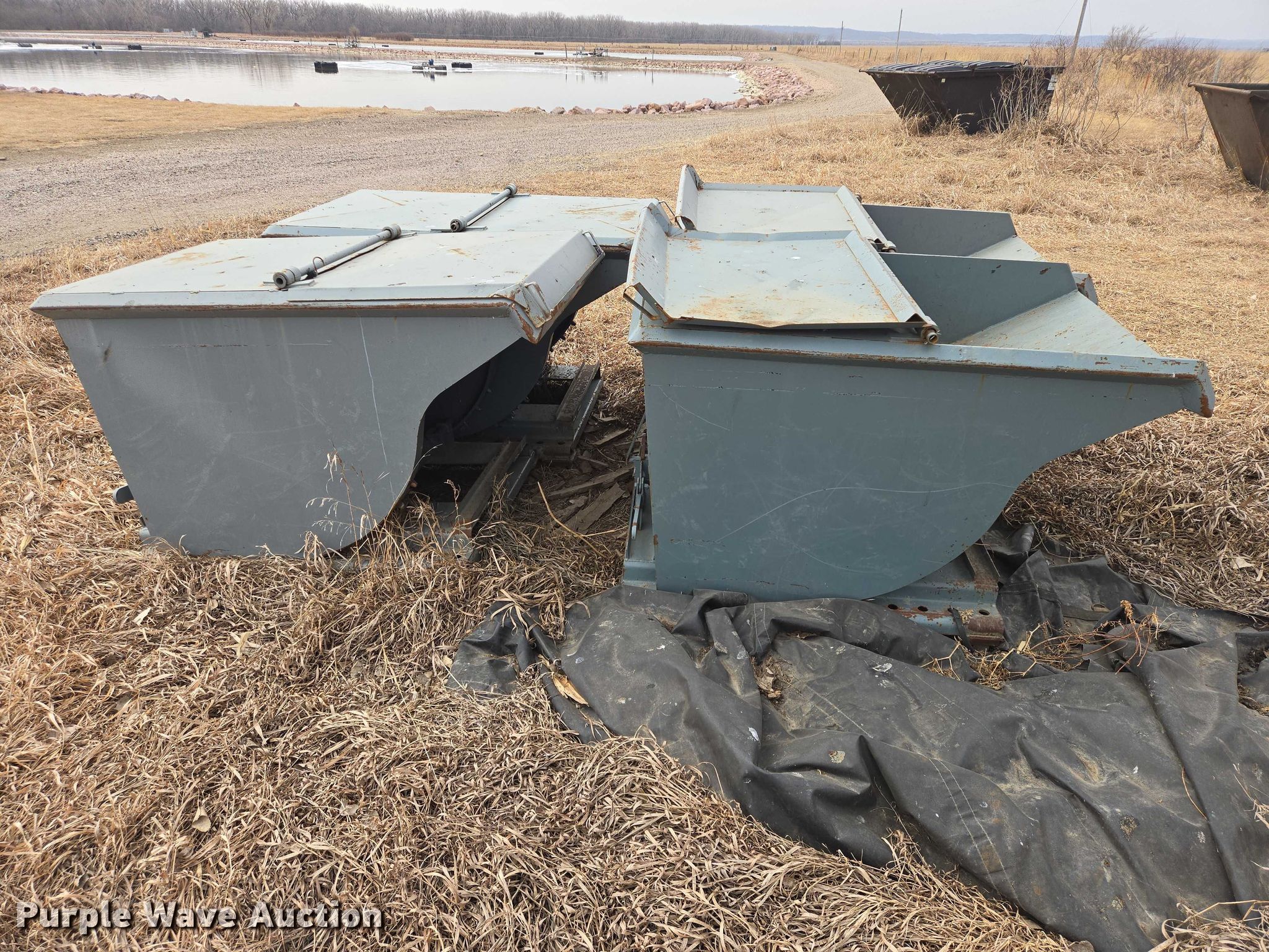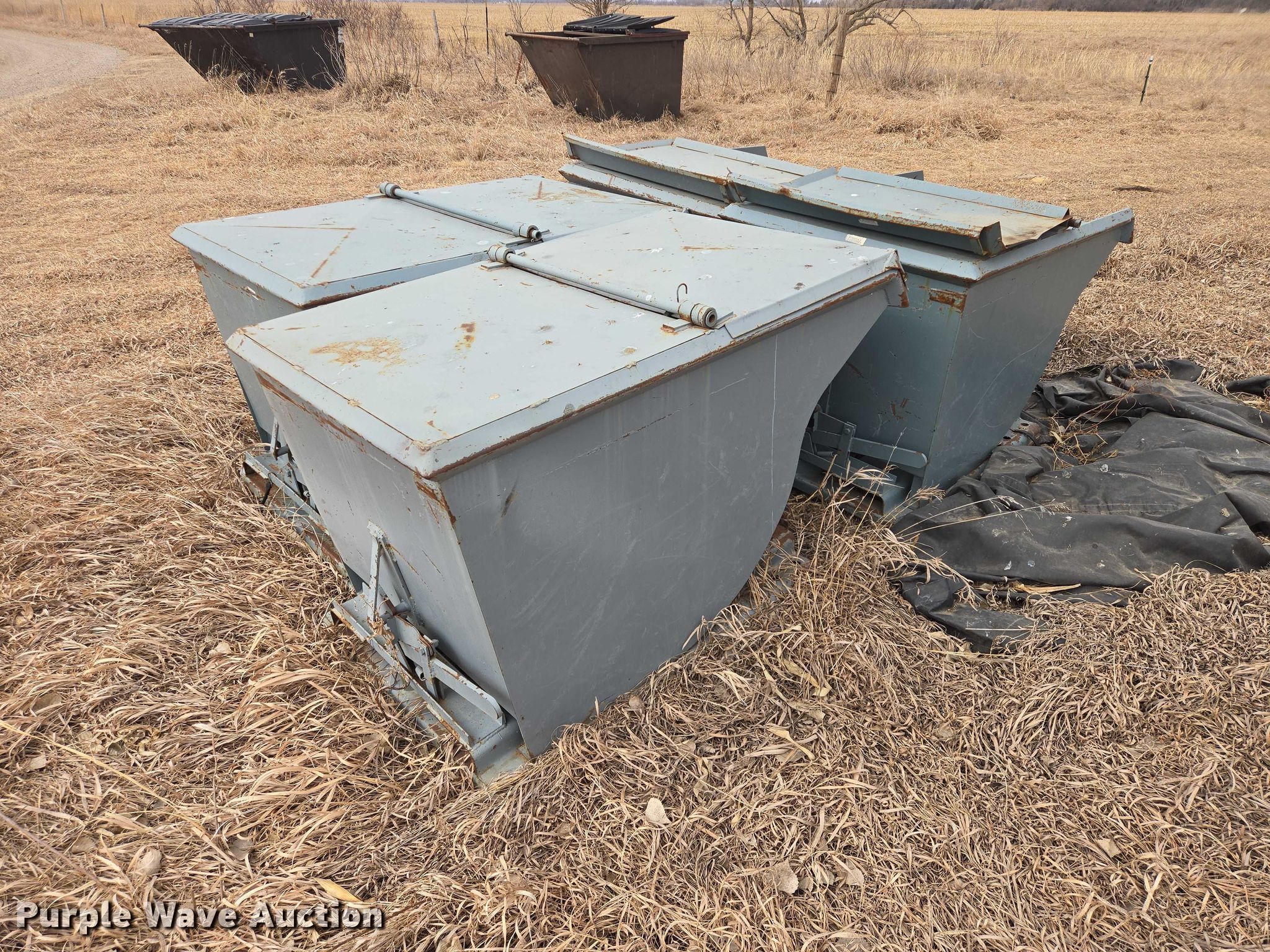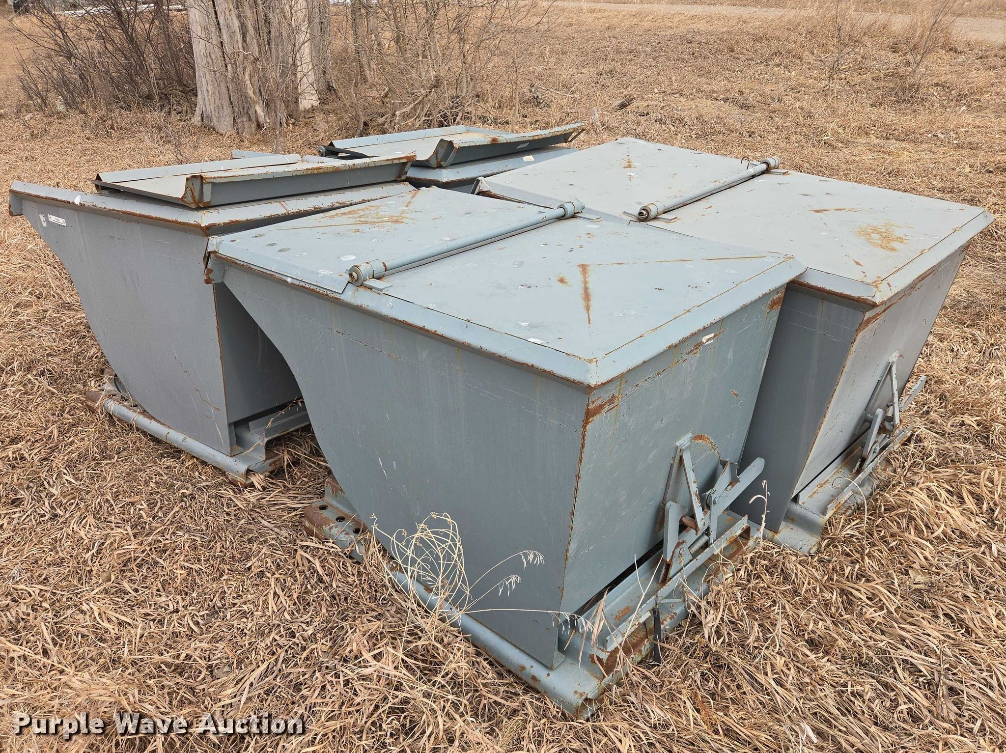 Purple Wave is selling a used Forklift Attach. in South Dakota. This item is a (4) dump hoppers with the following: Approximate dimensions: 62" x 39" x 37"