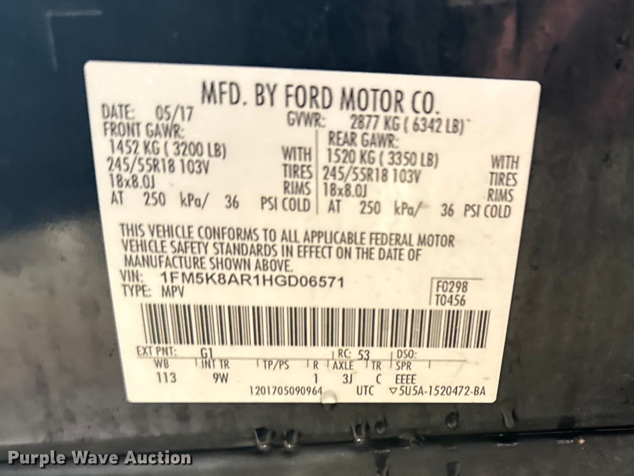 • VIN: 1FM5K8AR1HGD06571