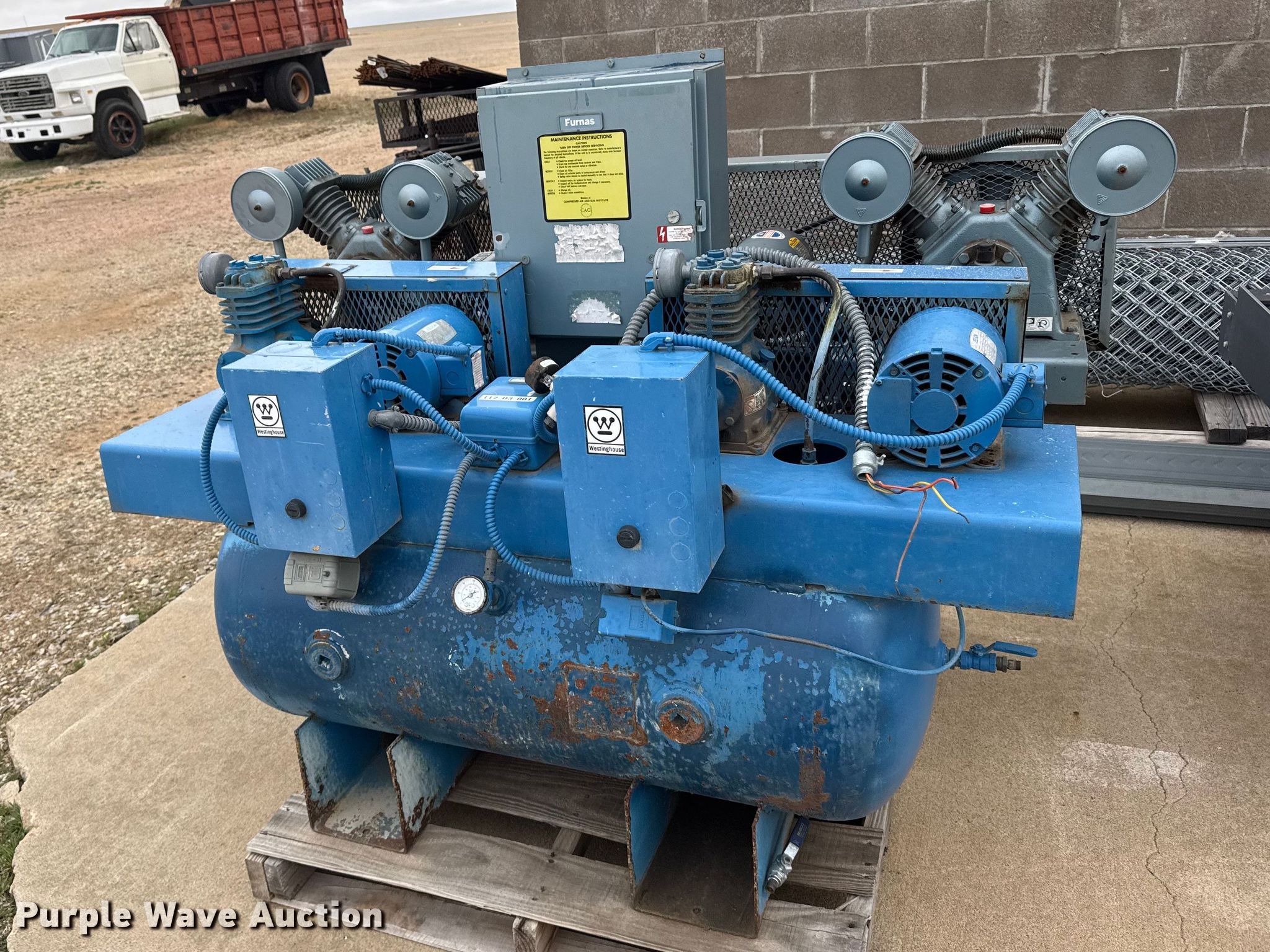 Purple Wave is selling a used Air Compressor in Kansas. This item is a (2) air compressors with the following: (2) air compressors. Ellsworth Correctional Facility. Ellsworth, KS 67439