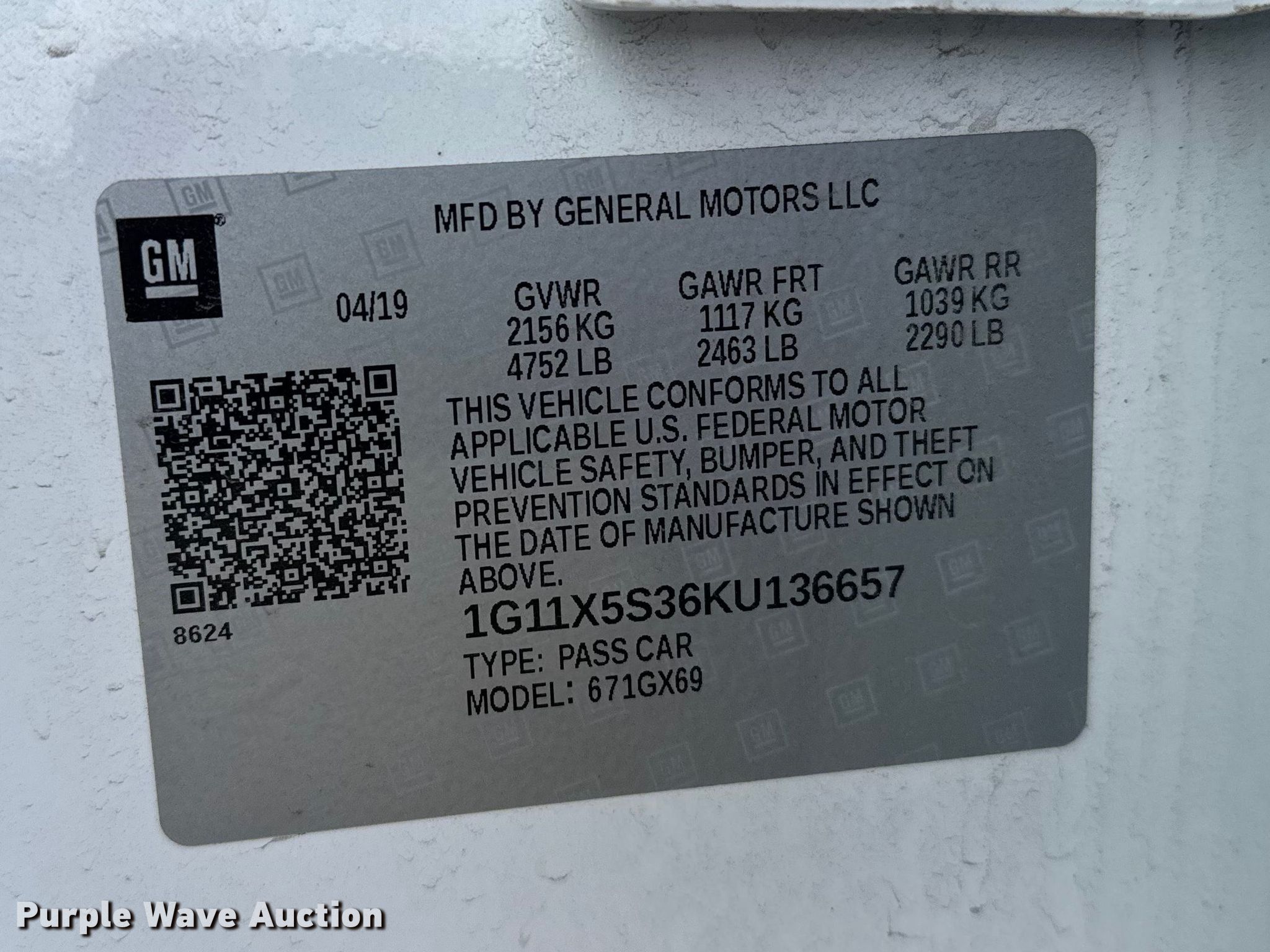 Purple Wave is selling a used Passenger Vehicle in Kansas. This item is a 2019 Chevrolet Impala with the following: Miles: 31,929 on odometer, VIN: 1G11X5S36KU136657