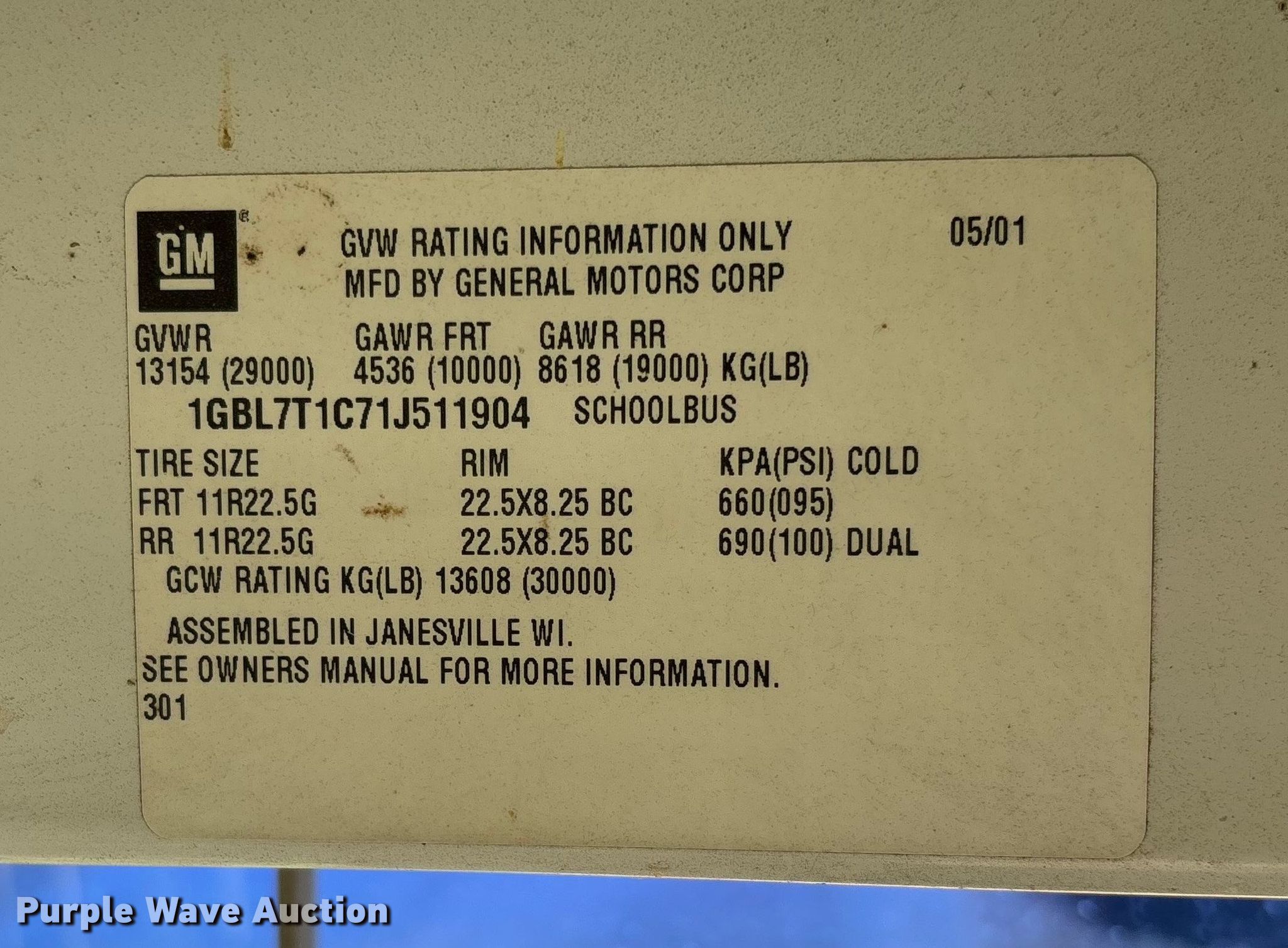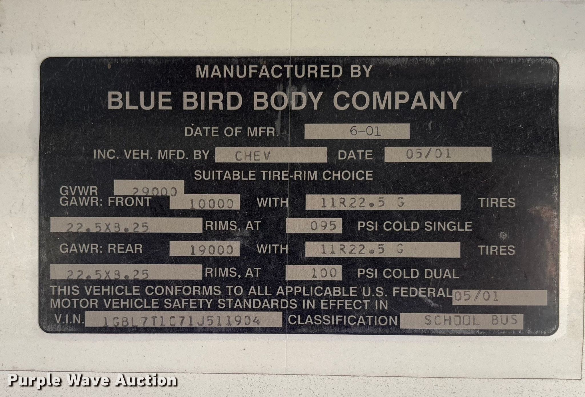 Purple Wave is selling a used Bus in Missouri. This item is a 2001 Chevrolet Blue Bird school bus with the following: Miles: 317,498 on odometer, VIN: 1GBL7T1C71J511904